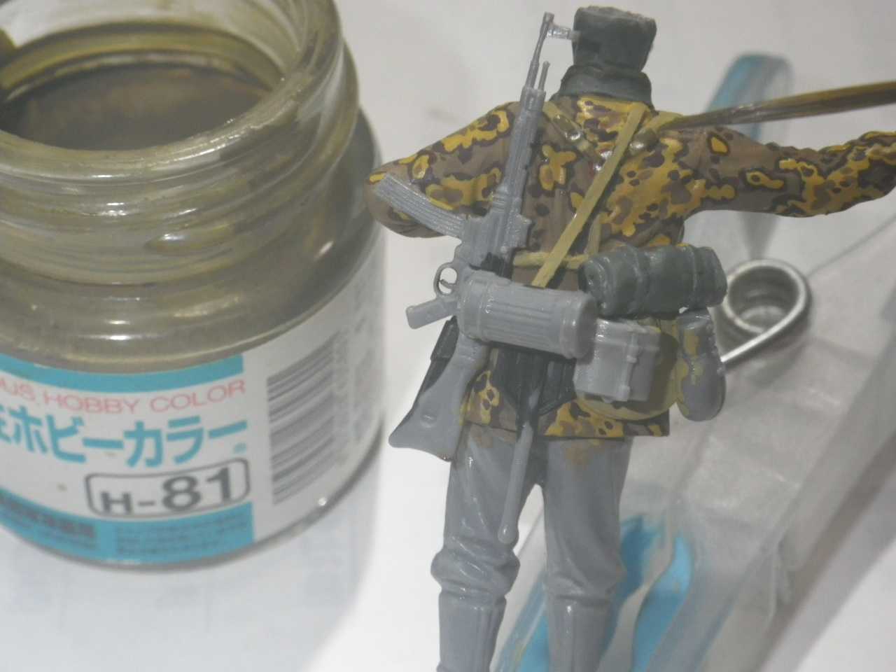 水性ホビーカラー H81 カーキで折り返し補強皮革を塗ります