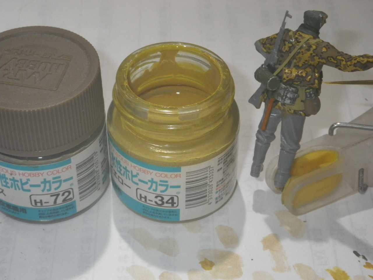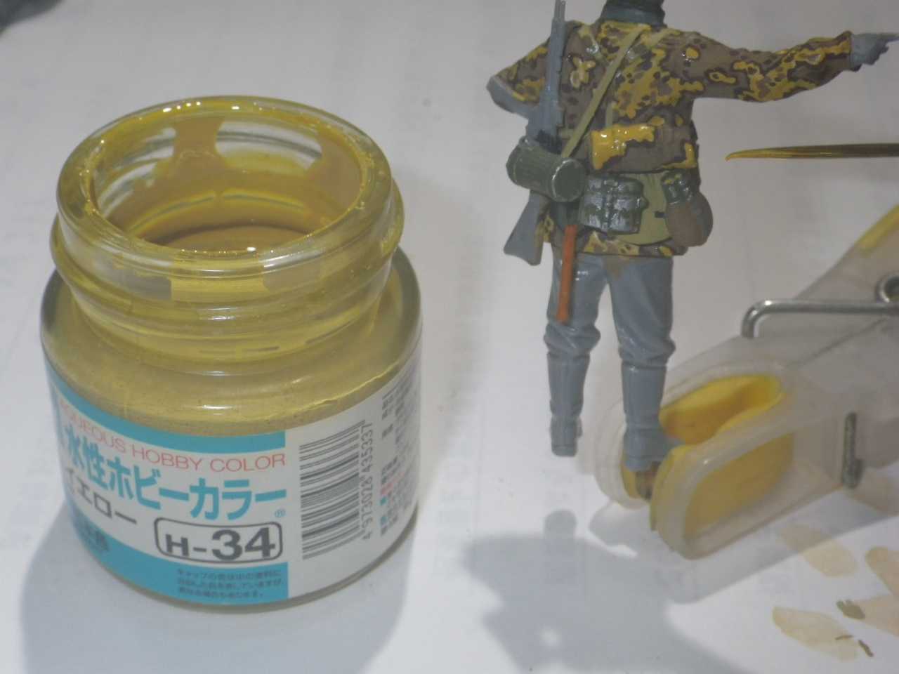 水性ホビーカラー H34 クリームイエローでも点描迷彩を入れます
