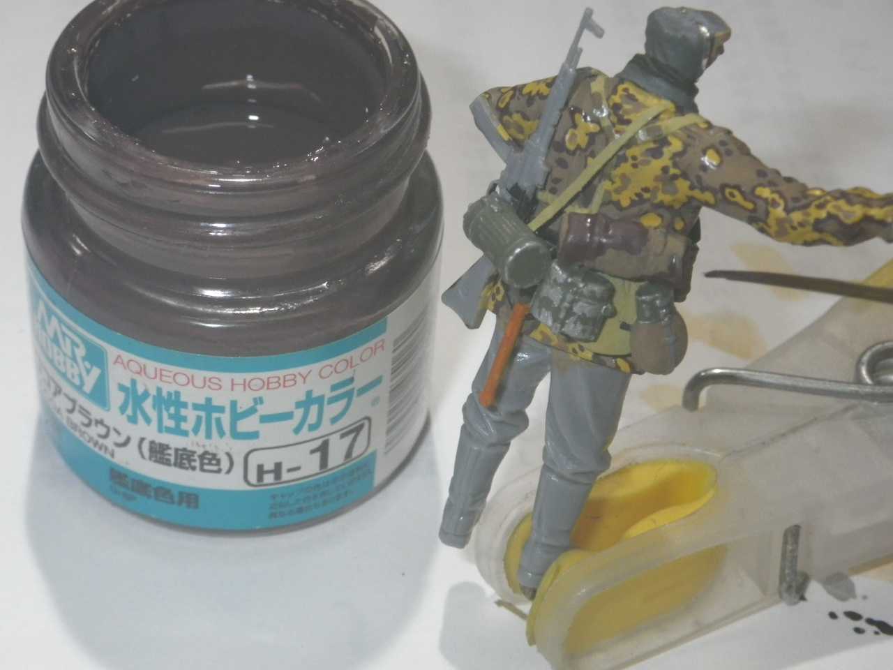 水性ホビーカラー H17 ココアブラウン(艦底色)で点描迷彩を入れます