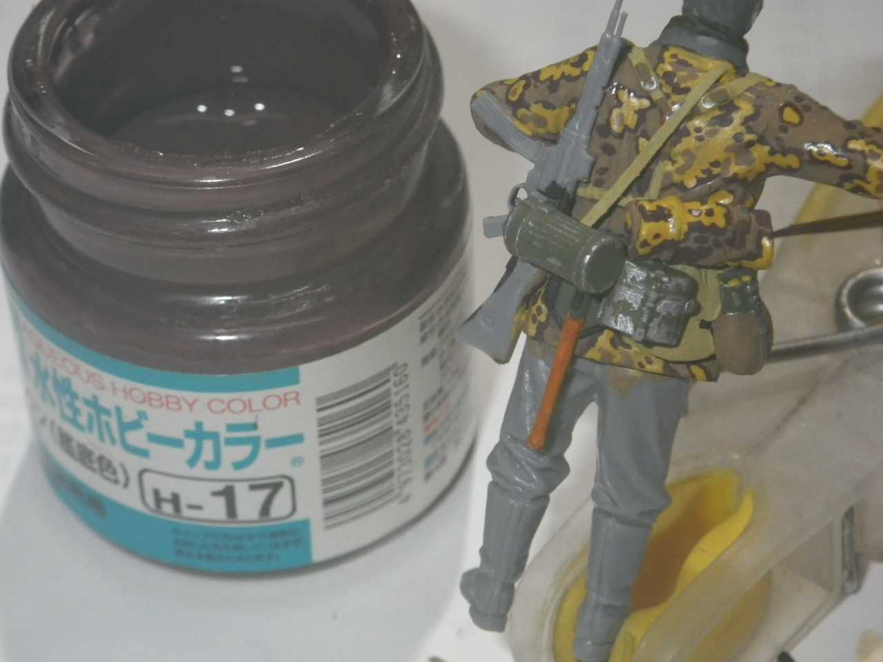 水性ホビーカラー H72 ダークアースでツェルトバーンの迷彩ベース塗装します