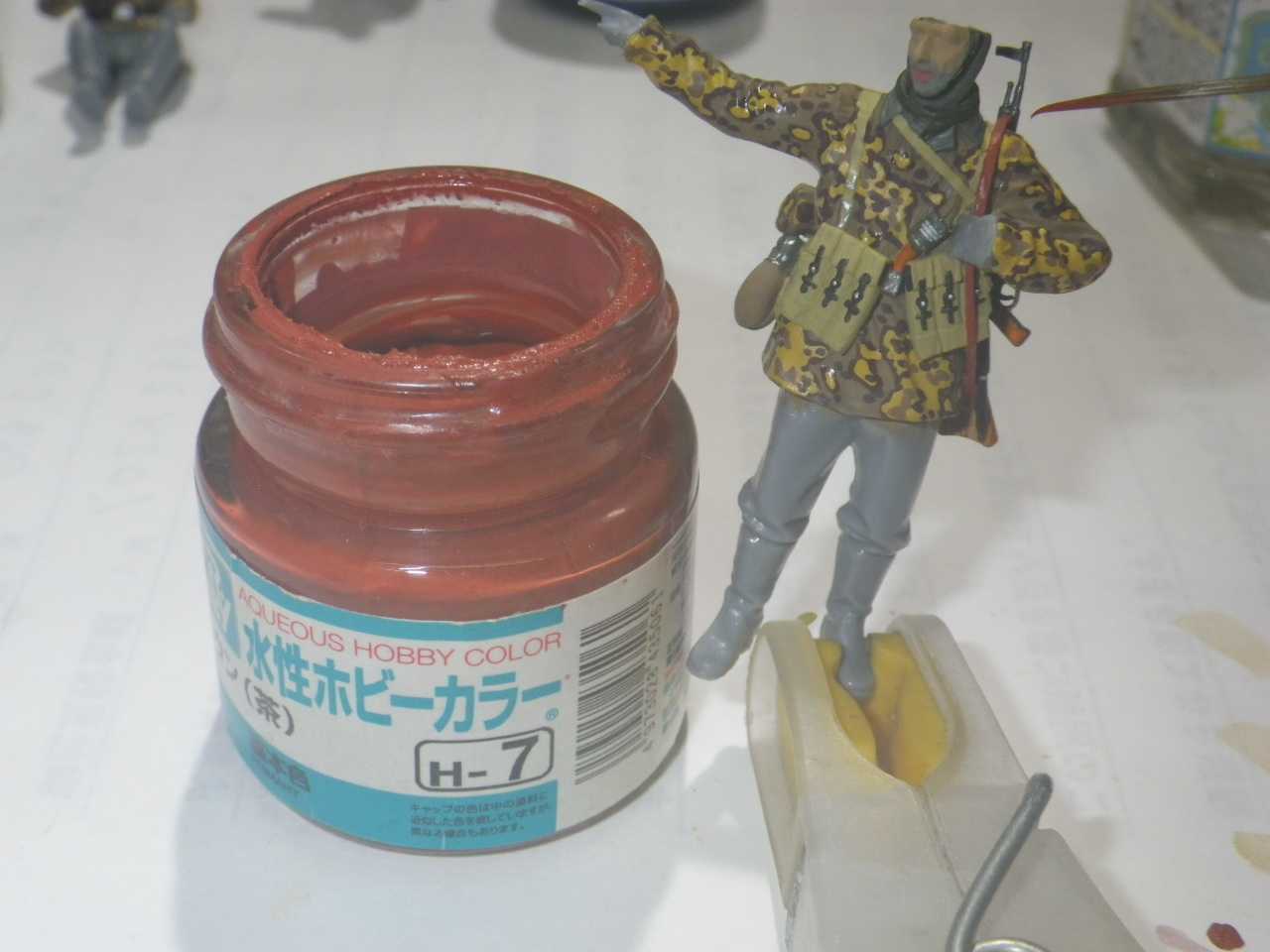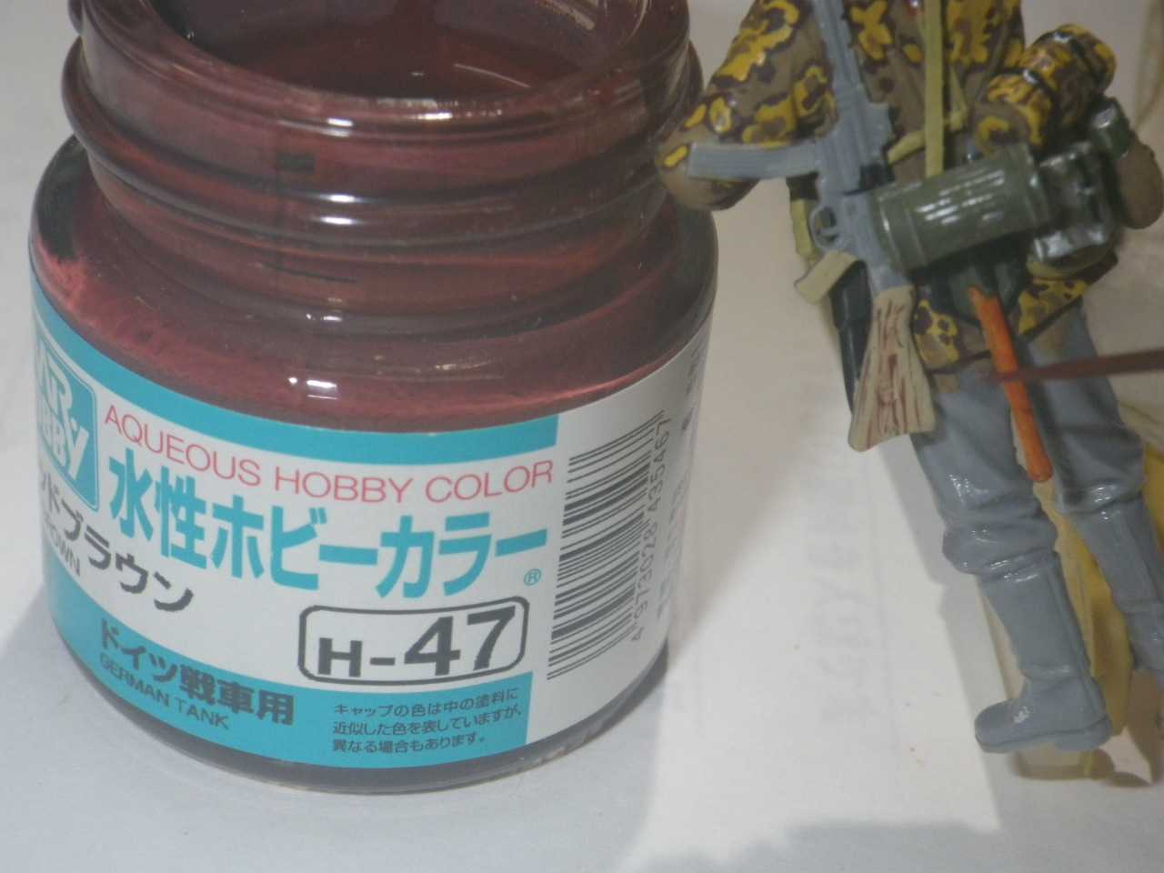 水性ホビーカラー H47 レッドブラウンで木目カスレ塗りします