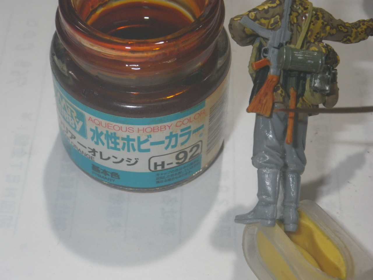 水性ホビーカラー H92 クリアー オレンジでステイン仕上げ重ね塗りします