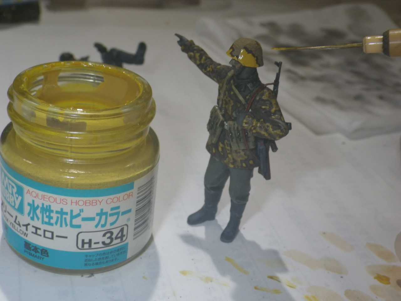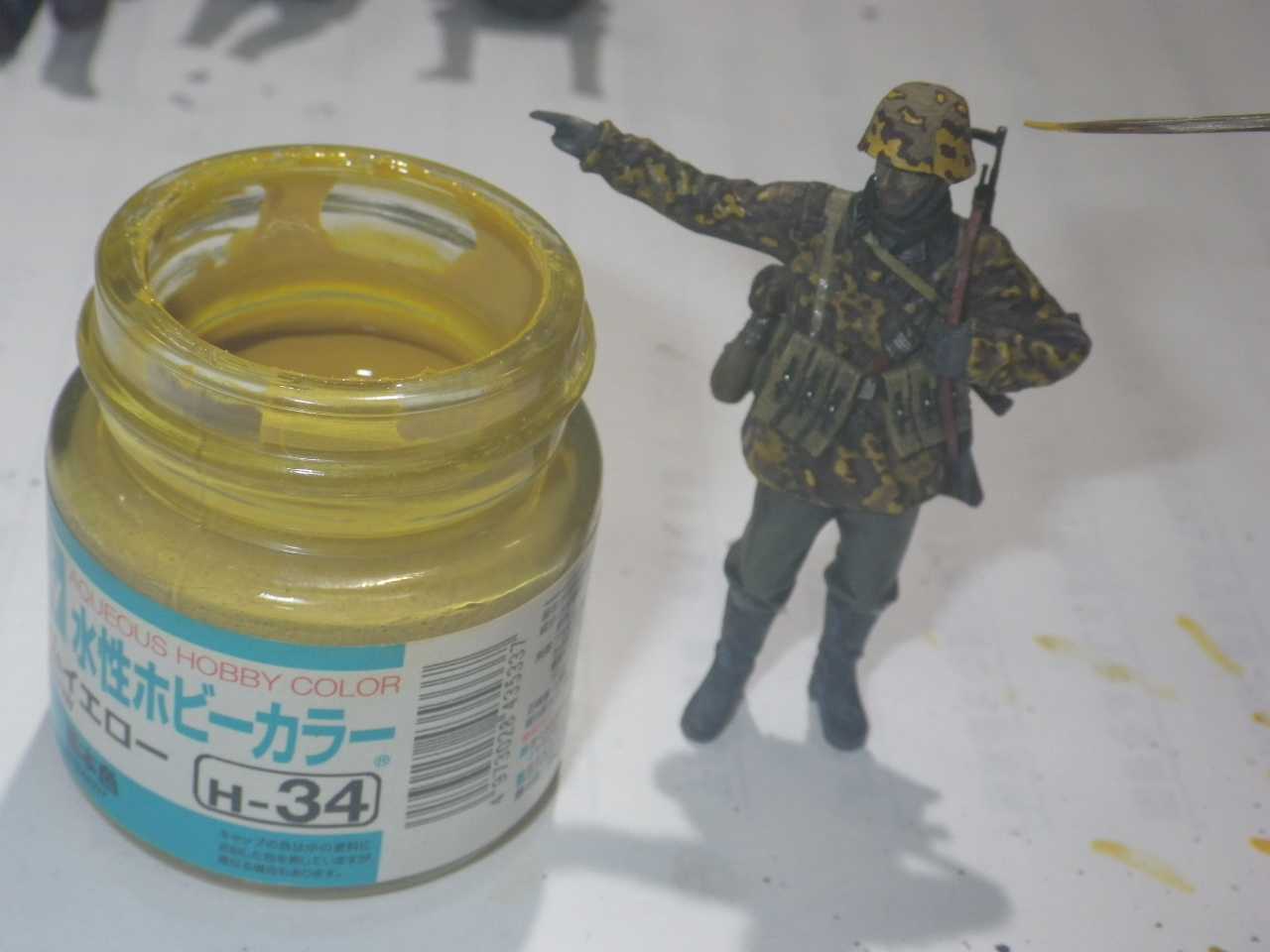 水性ホビーカラー H34 クリームイエローで中抜き塗りします