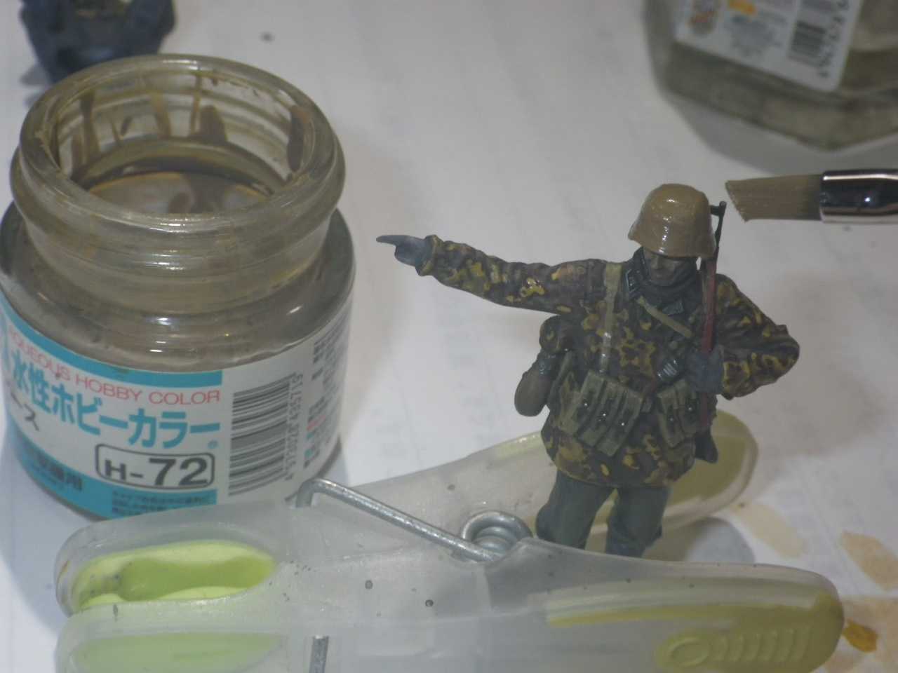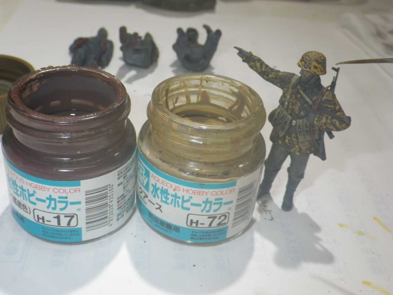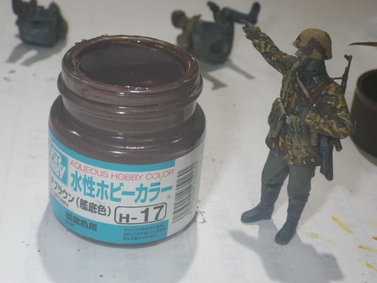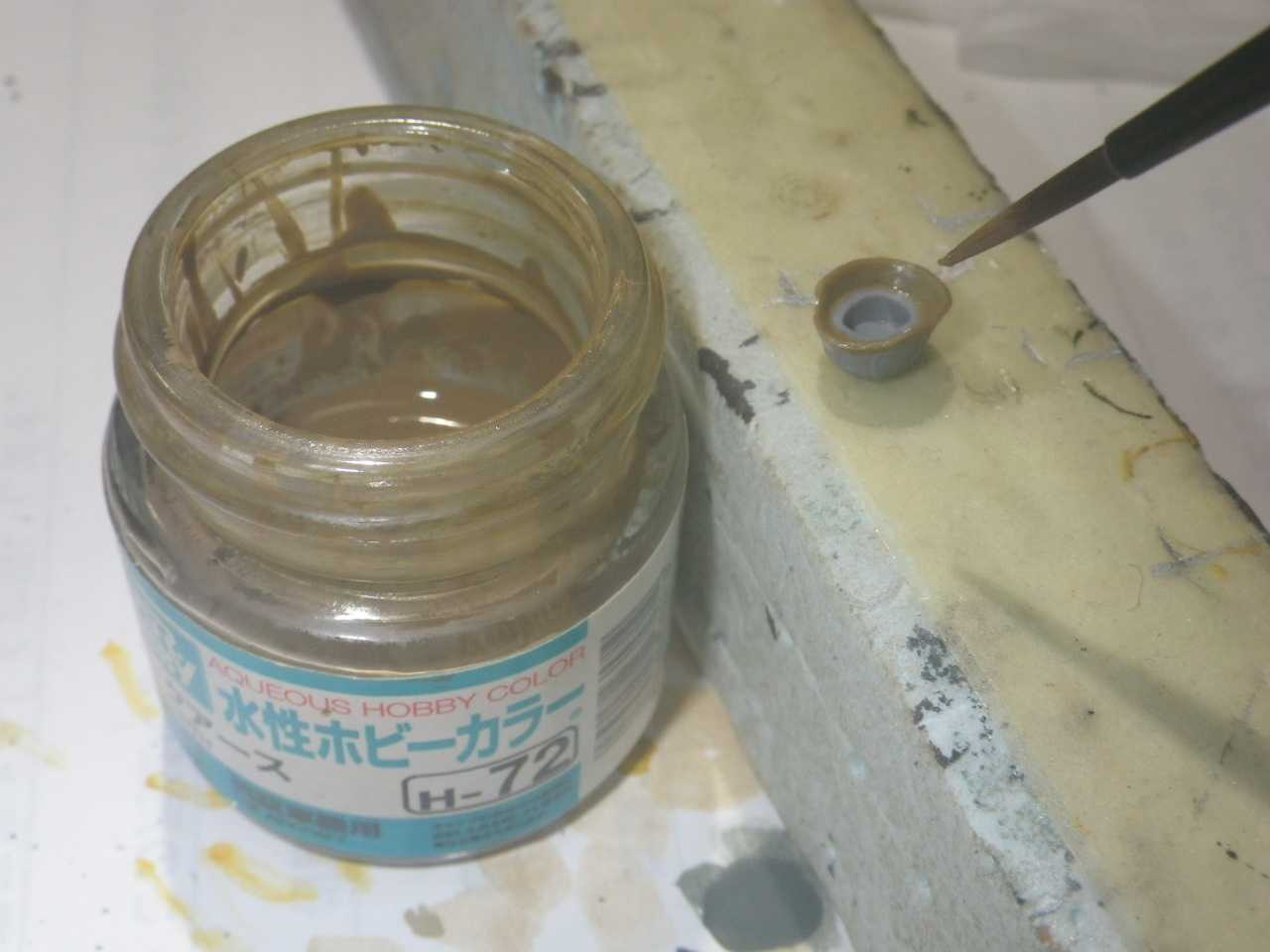 水性ホビーカラー H72 ダークアースでヘルメット内側をカバーベース色で塗ります