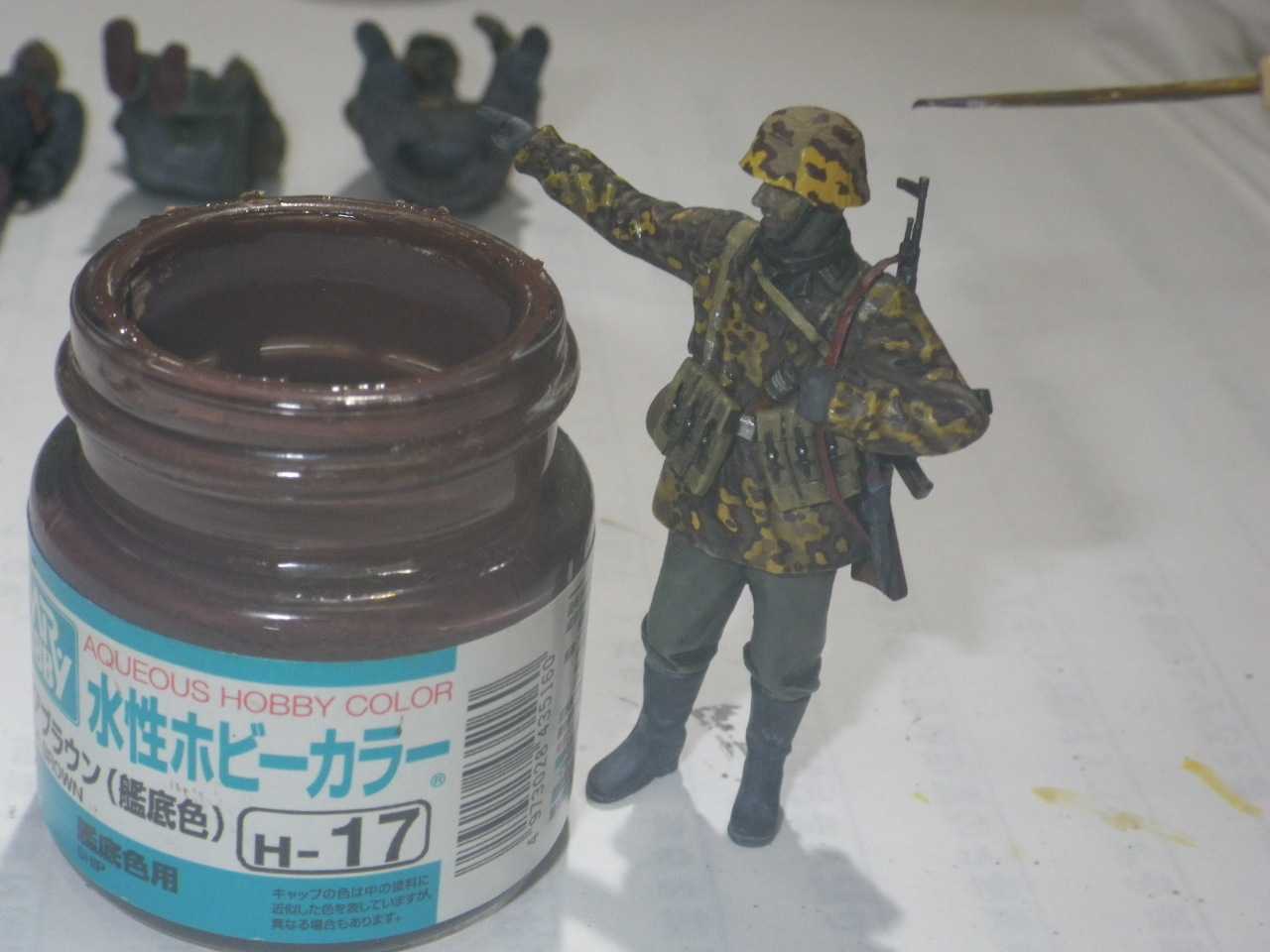 水性ホビーカラー ココアブラウン(艦底色)【H17】で茶系大柄迷彩を入れます