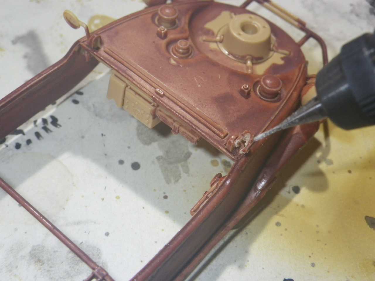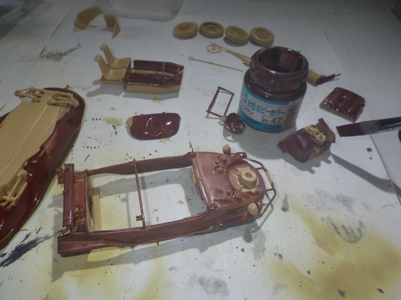 水性ホビーカラー H47 レッドブラウンで錆止め色を下塗りします