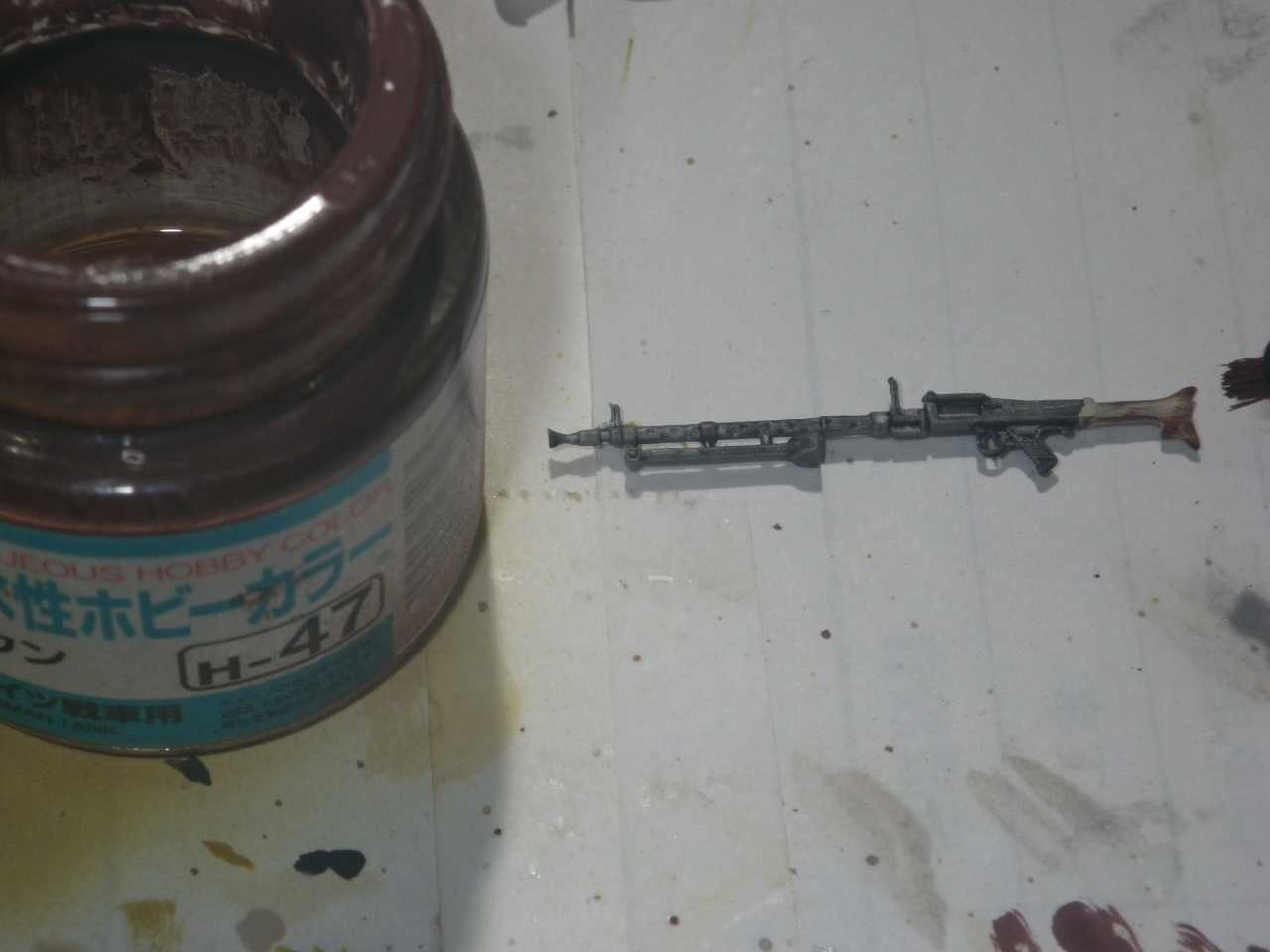 タミヤの小火器セットの3脚取付用MG34を使用します、横の穴開きも隠れるので都合が良いです