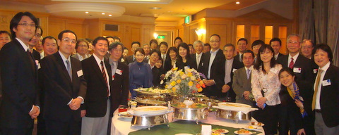 客員の長田先生と研究室で情報交換。現れた林川先生と 3人で謝恩会へ向かう。
