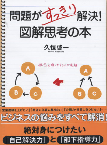 タイトルは、 「問題がすっきり解決! 図解思考の本」(PHP研 究所)。数年前、「Big Tomorrow」という若者向 けのビジネス雑誌で、 「久恒先 生の図解!お悩み相談塾」という企画で、読者から悩みの相談をもらい、それに誌上で図解を用いて一緒に問題解決をしていくという趣向を続けたこと がある。30代を想定したビ ジネスマンの悩みを毎回取り上げた企画で、私自身も楽しみながら解決にあたった。なかなか好評で、突然「あれを読んでいます」という人にも何人か に遭遇した経験もある。