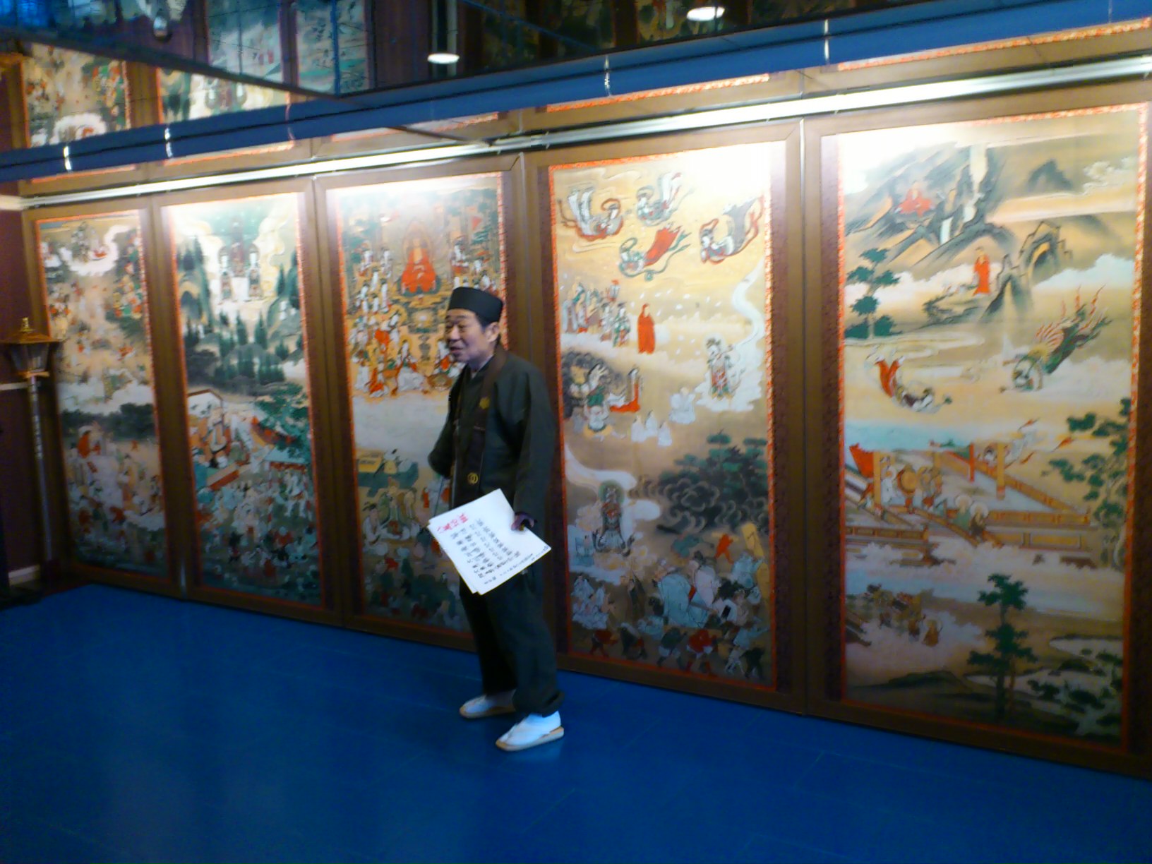 昨日、おいらの所属している大道芸研究会 会長(麻布十兵衛)が、 毎月16日に実施している、 「地獄:極楽絵解き口上」を、観に行った。 「地獄:極楽絵解き口上」 H24年12月16日(日) 場所:門前仲町「法乗院(閻魔堂)」江東区深川2-16-3 時間:10時、11時、14時 演目・出演者:地獄:極楽絵解き口上(麻布十兵衛) テレビ出演 H24年12月21日(金)、28日(金:再放送) 放映局:NHK教育TV『団塊スタイルー 夫が!大道芸で再出発!!』 時間:20時~20時45分(21日)、11時~11時45分(28日) 演目・出演者:バナナの叩き売りなど(麻布十兵衛)