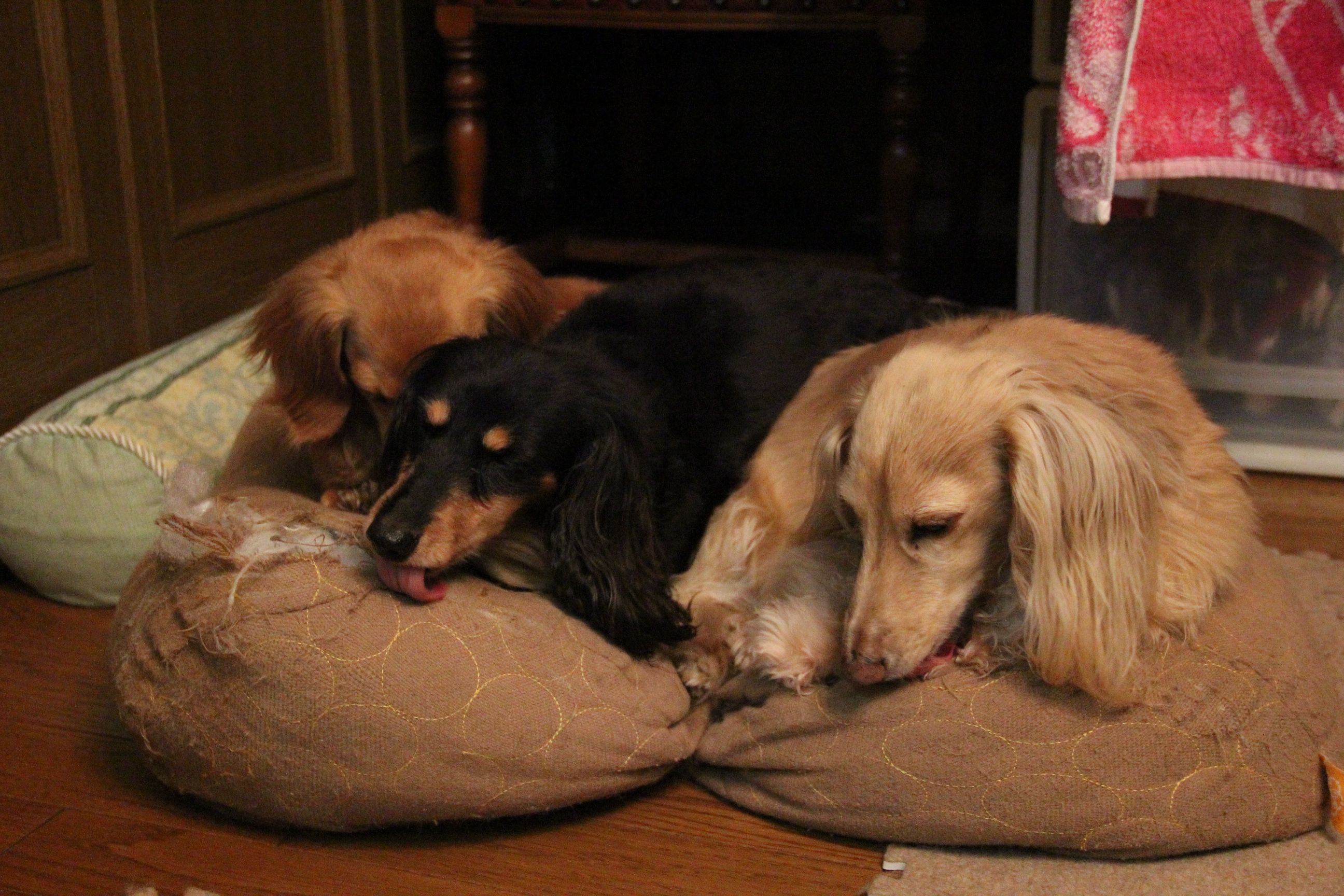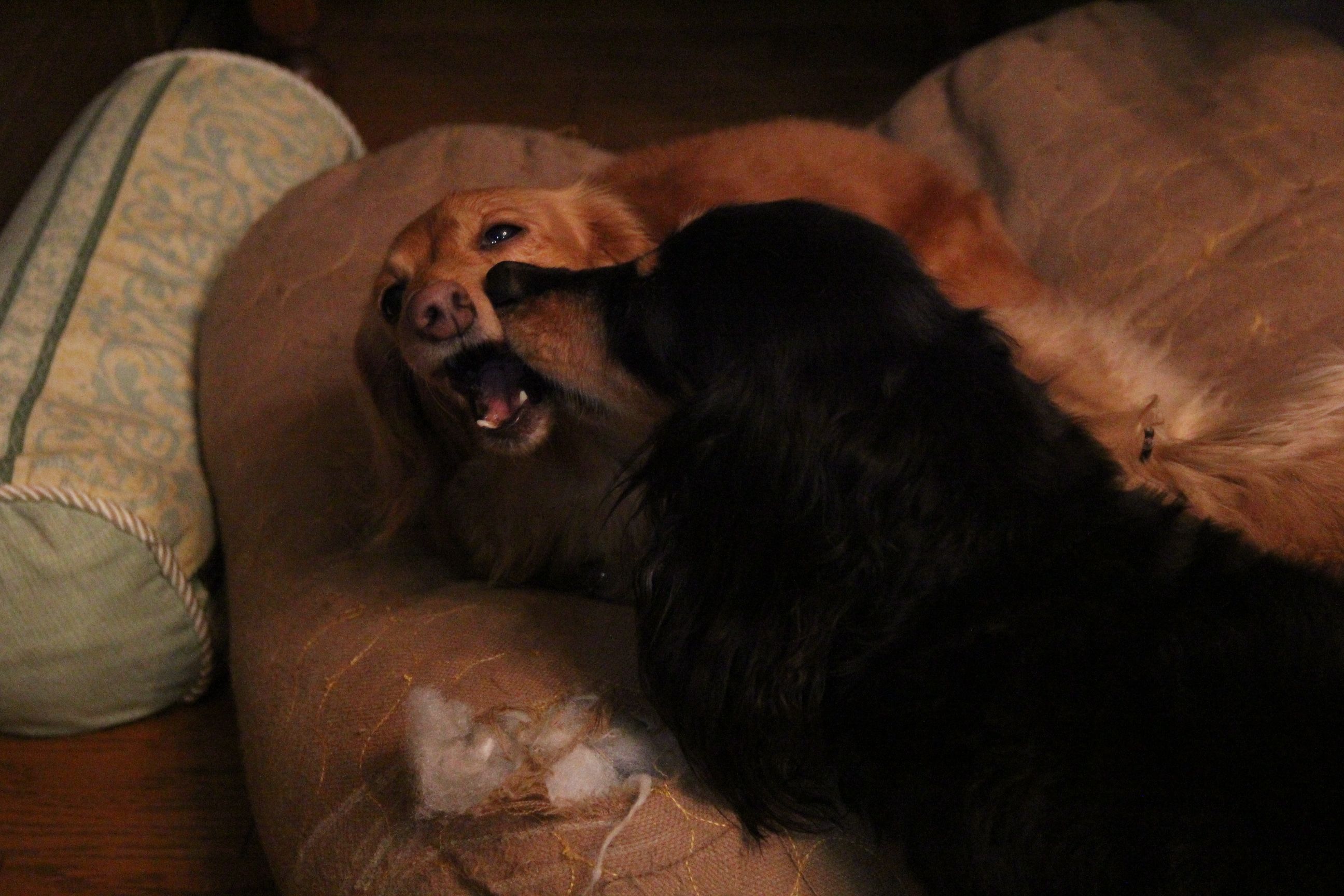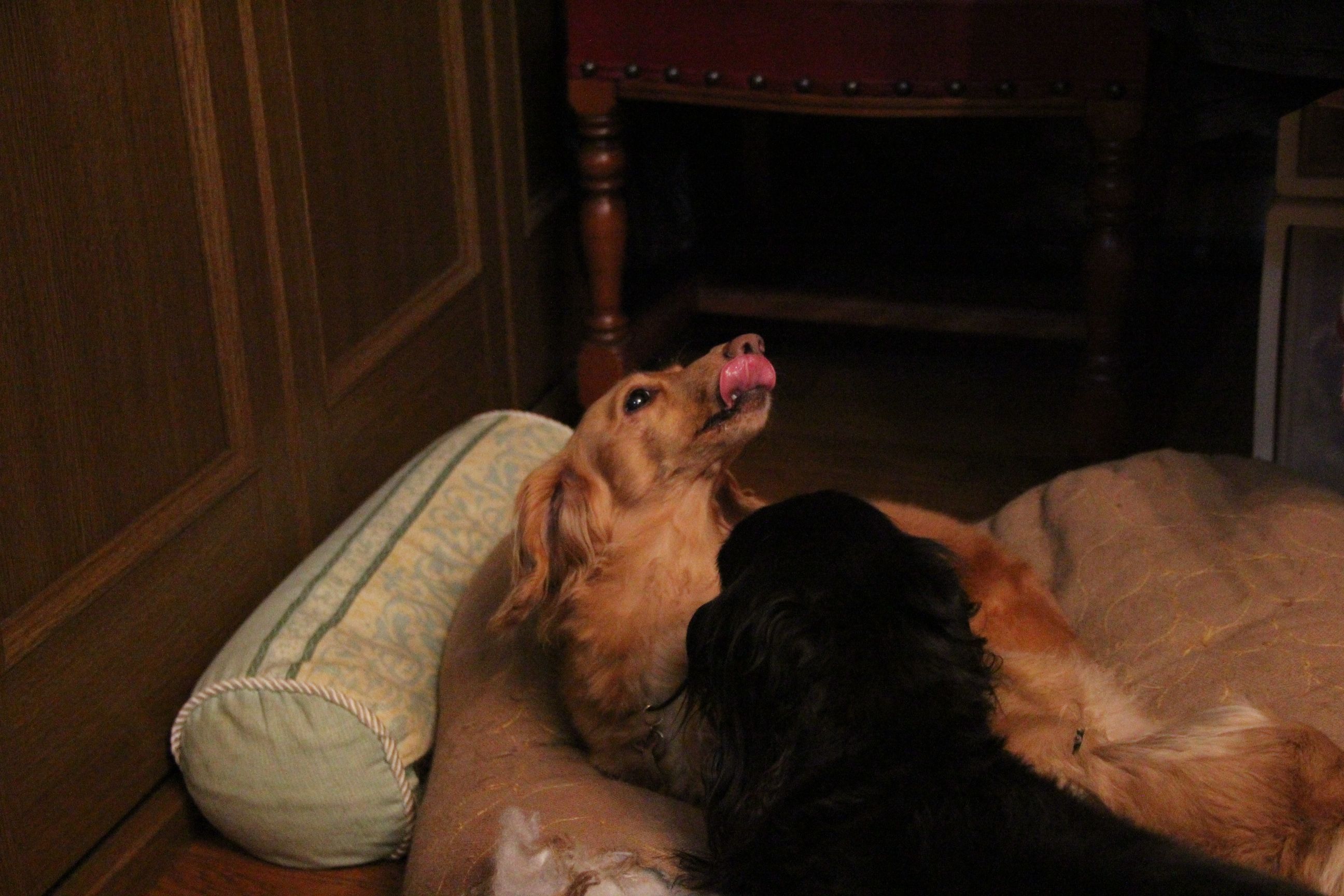 今度はクッションをペロペロ~
