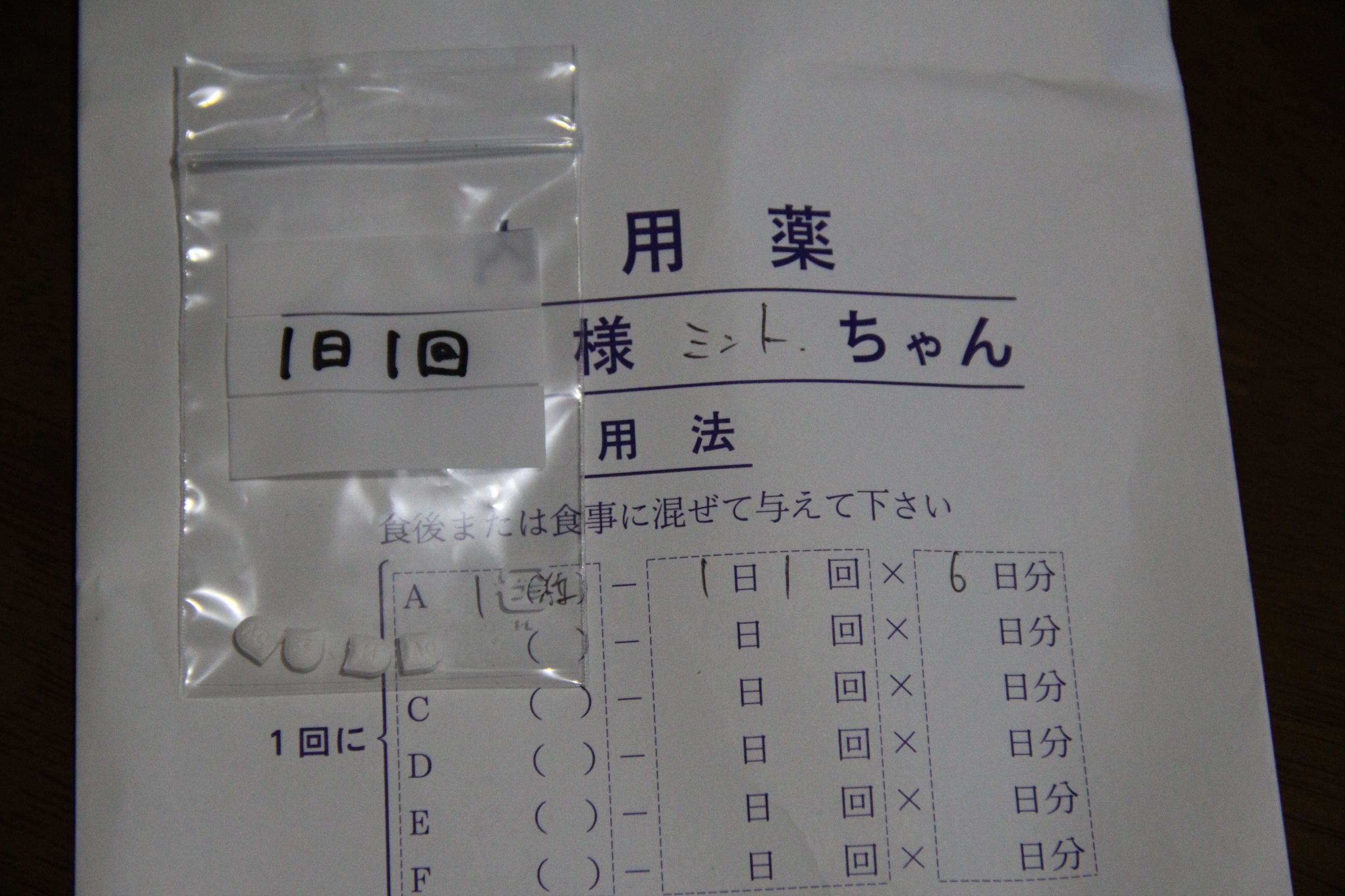 抗生剤が合ってカイカイしなくなったので、1日2回のお薬を1回に。