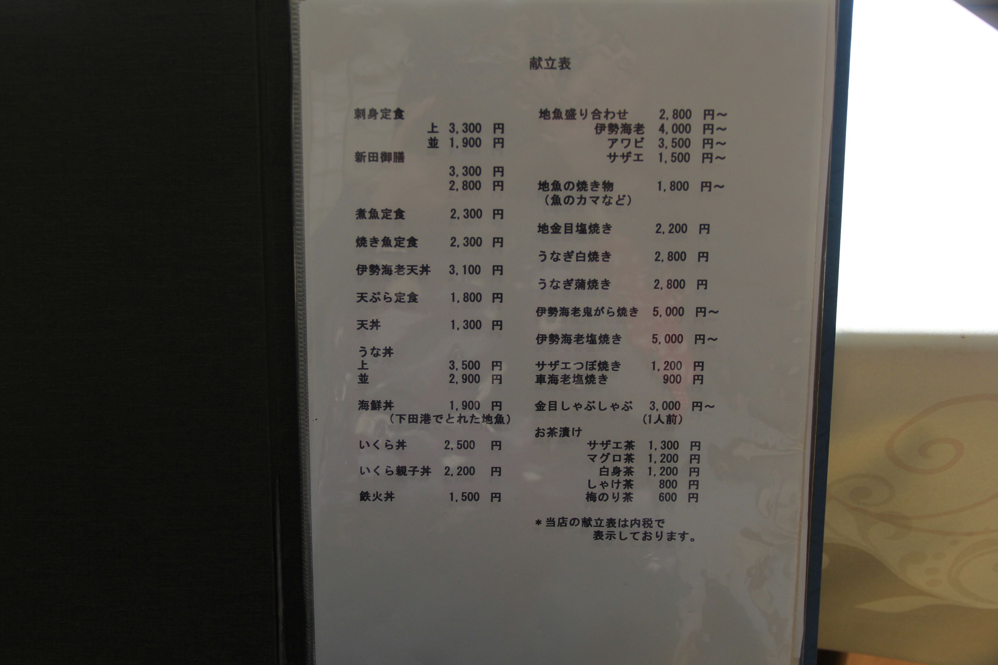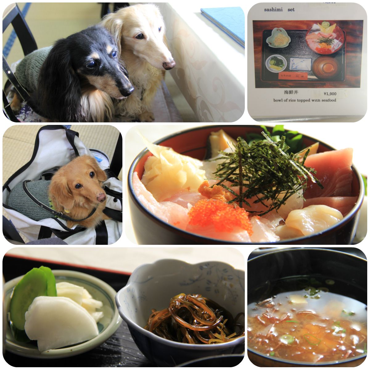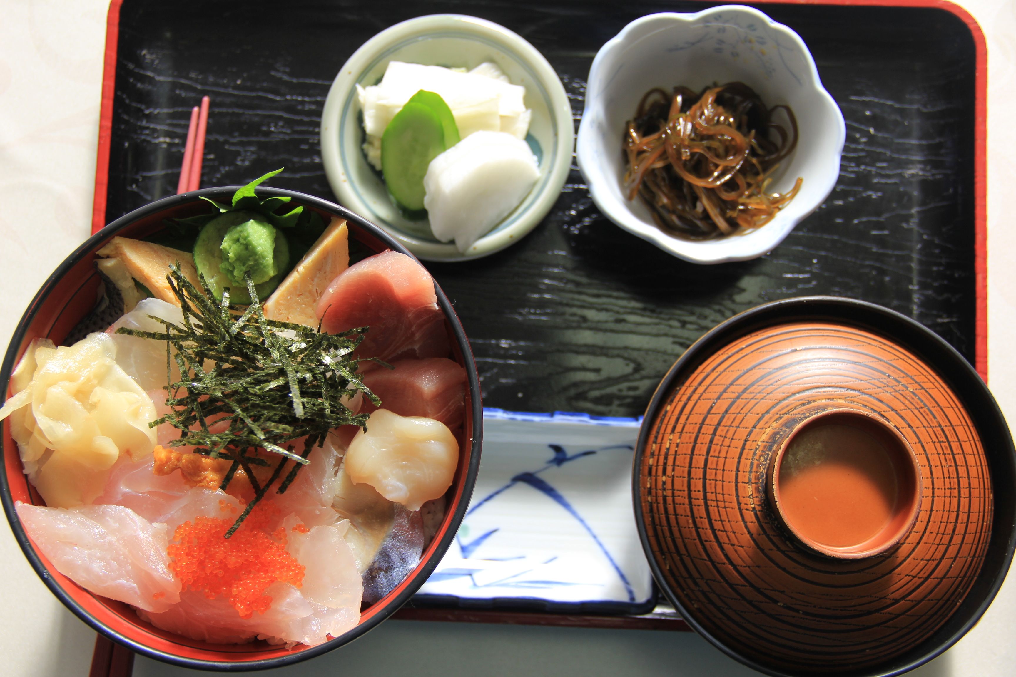 下田港でとれた地魚がいろいろのった海鮮丼、ふのりの味噌汁などなど・・・