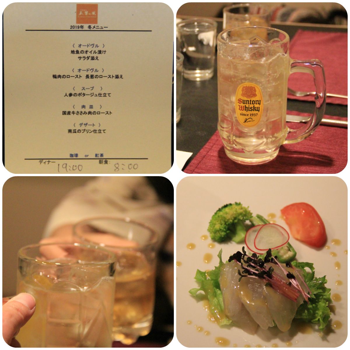 お夕食はチェックイン時に18時又は19時を選べてHITONたちは19時を選択