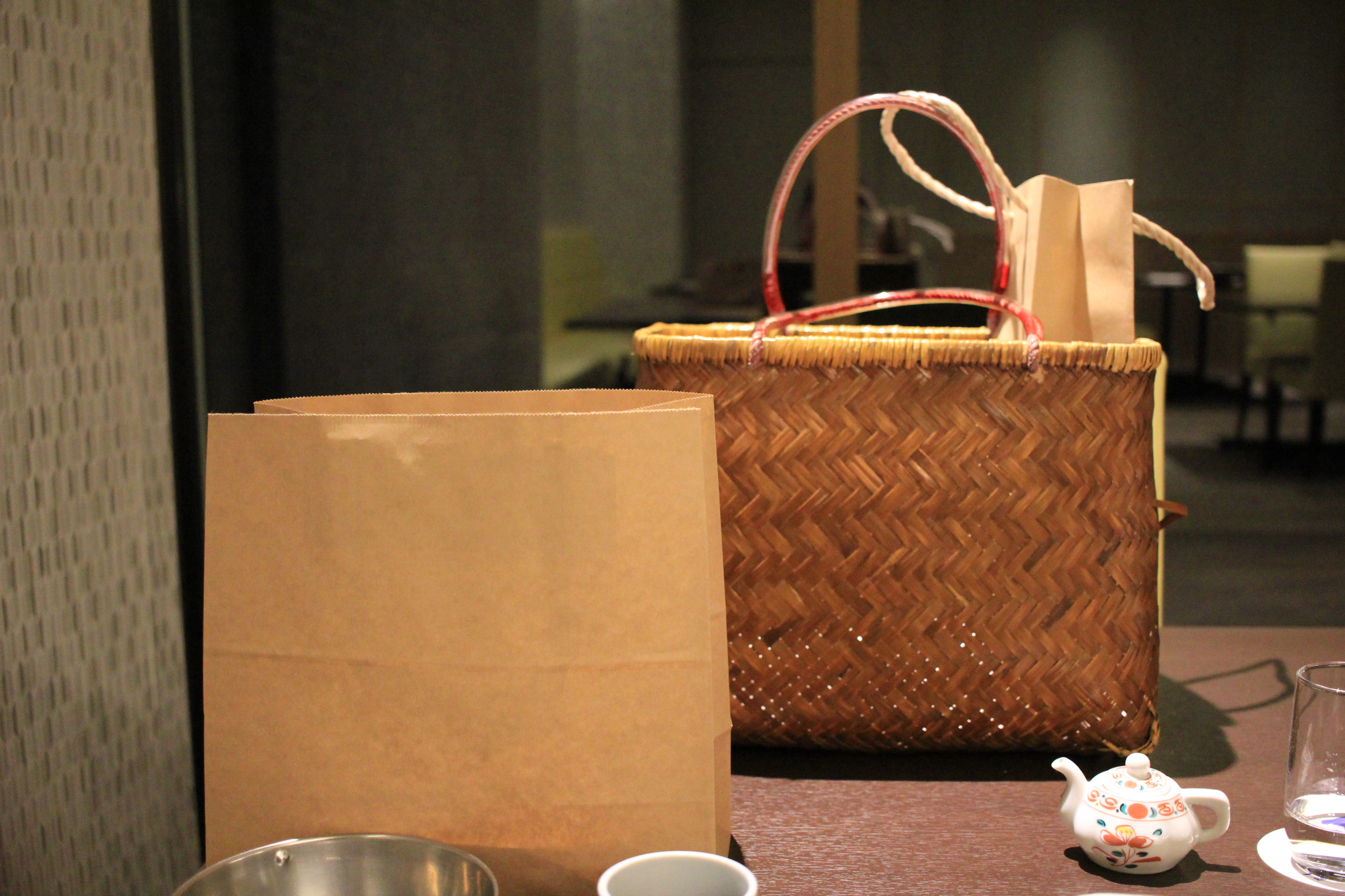 ワインの残りと馬肉の炙りは持ち帰り用に包んでくれたよ