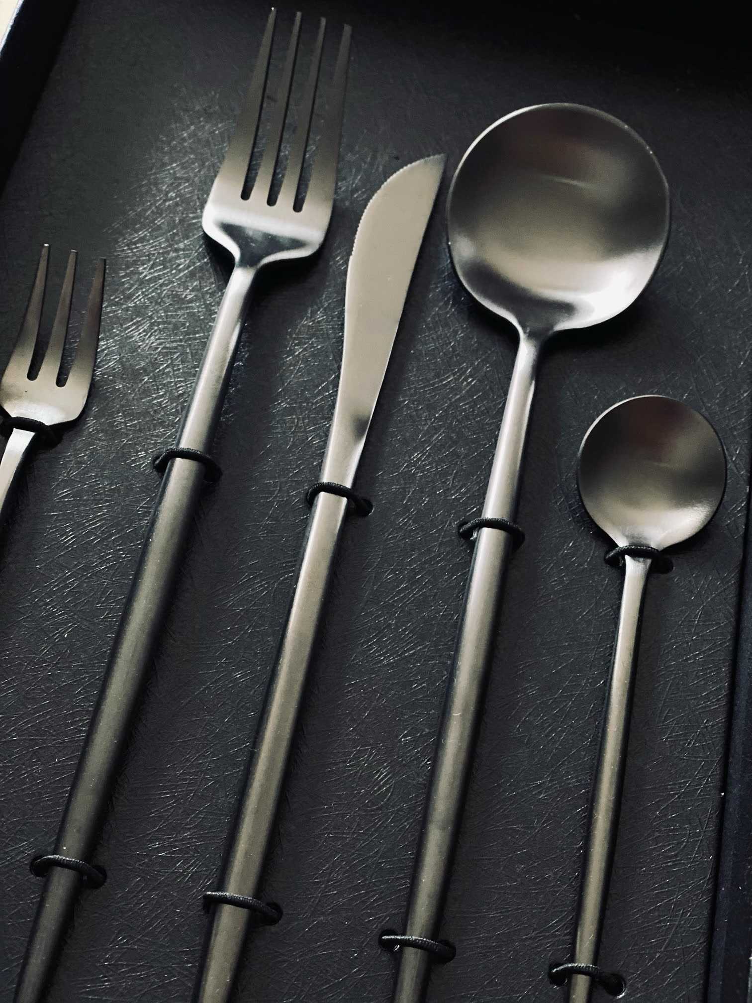 昨日我が家へ仲間入りした子たち。なんか素敵な箱に入ってきた!自宅用なんだけど・・・なんかもったいないなー(笑)誰かにプレゼントしたくなる(しないけど。私が使うけど・笑)ブラックとなっていたけど、真っ黒というよりかはメタルブラックって感じかなぁ?とにかくカッコイイ!!以前購入したカトラリーレストに合う!イメージ通り!!ちょっと重みがある感じなのが私好み。ちなみに私が購入したカトラリーセットはコチラ(↓)。【10%P還元】Hive Mind 北欧風 カトラリーセット 5本 ギフトボックス入り おしゃれなギフトに最適 18-8ステンレス製 結婚祝い 引越し祝い 開店祝い プレゼント用にもおすすめ 食洗機対応これは・・・早く使う機会を作らないとね!(笑)え?何を作ったらいい??料理苦手なのに・・・(苦笑)肉焼くか?肉。しかし、肉すら上手に焼けない私。どうするーーーーー???(笑)結局、朝食を食べて空腹を満たしても眠れず。投稿してみたりしている私。こんな時はどうしたらいいのー?(笑)そして今日は引きこもりDayに決めた!のんびり過ごそー!!