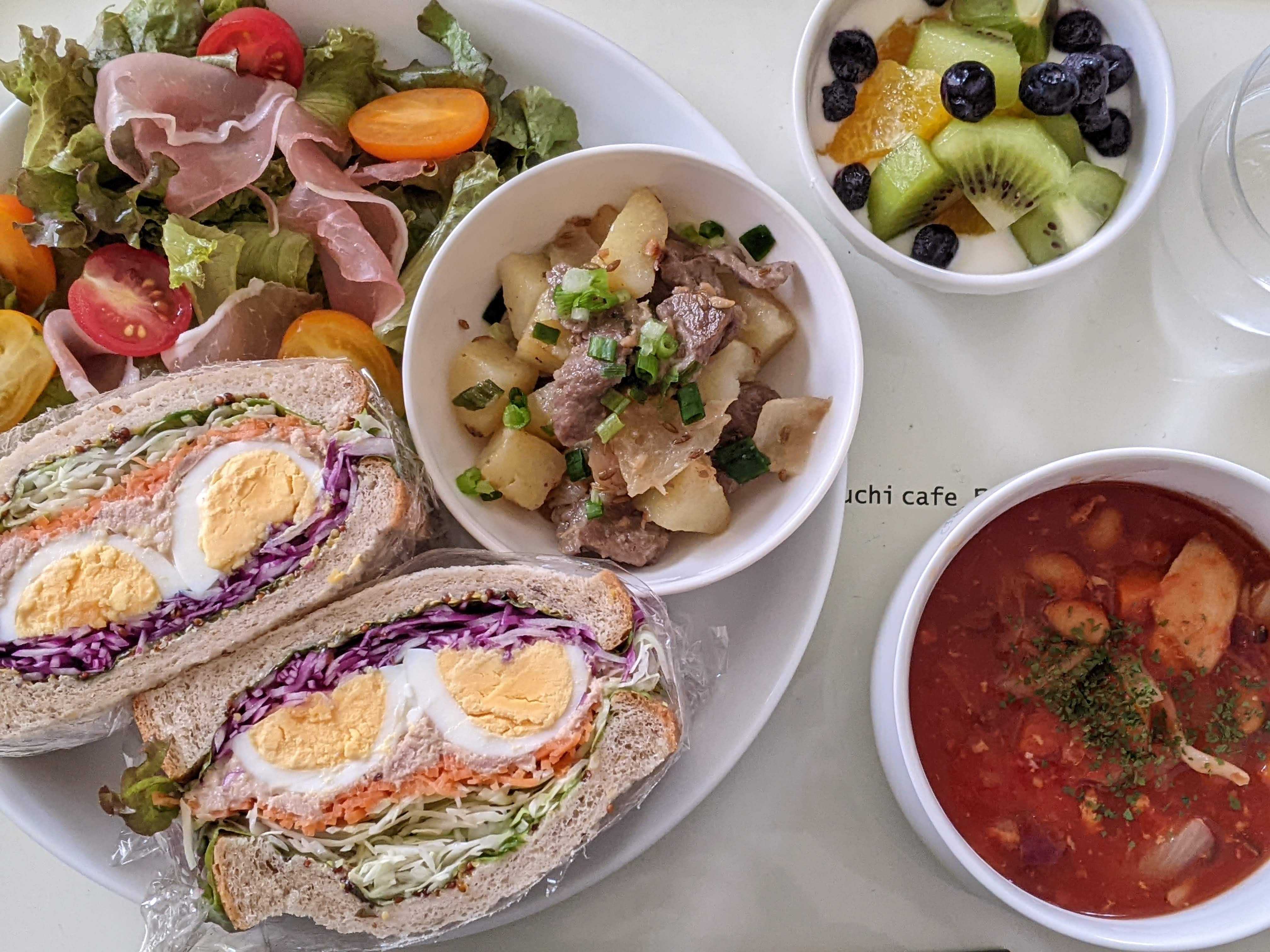 ちょっと怠いかな?と思いつつも布団に入ることがなく1日を終えてしまった(笑)<昼ごはん>・鶏むね肉のミネストローネ風スープ・サンドイッチ・ジャガイモとラムのクミン炒め(昨日の残り)・生ハムサラダ・豆乳ヨーグルト(オレンジ、キウイ、ブルーベリーのせ)サンドイッチ、ここまで作ってから思い出した。友達が言っていたサンドイッチはコレではない。と。普通のツナとタマゴサンドだったと。具材をなじませるためにラップでぐるぐる巻きにしてあったのをカットしてあげた!私のぐるぐる巻きと友人のぐるぐる巻き、認識が違っている!あー、そーか、そーか。まぁ思い出せて良かった(笑)うん、アレなら大丈夫。私も好きだし。もう練習しなくてよさそう。<晩ごはん>・蕎麦・ゆば刺し・糠漬け朝昼多めだったので夜は少なめで。今日のヘッドスパ、おススメコースは私が思っていたのと違った。これはこれでアリなのだろうけど、どうだろう?前回の方がリラックスはできたのよねー。今回はツボ押しがメインのような。まぁさすがに寝てないし、今夜は眠れるんじゃないかなー?どうなることやら。