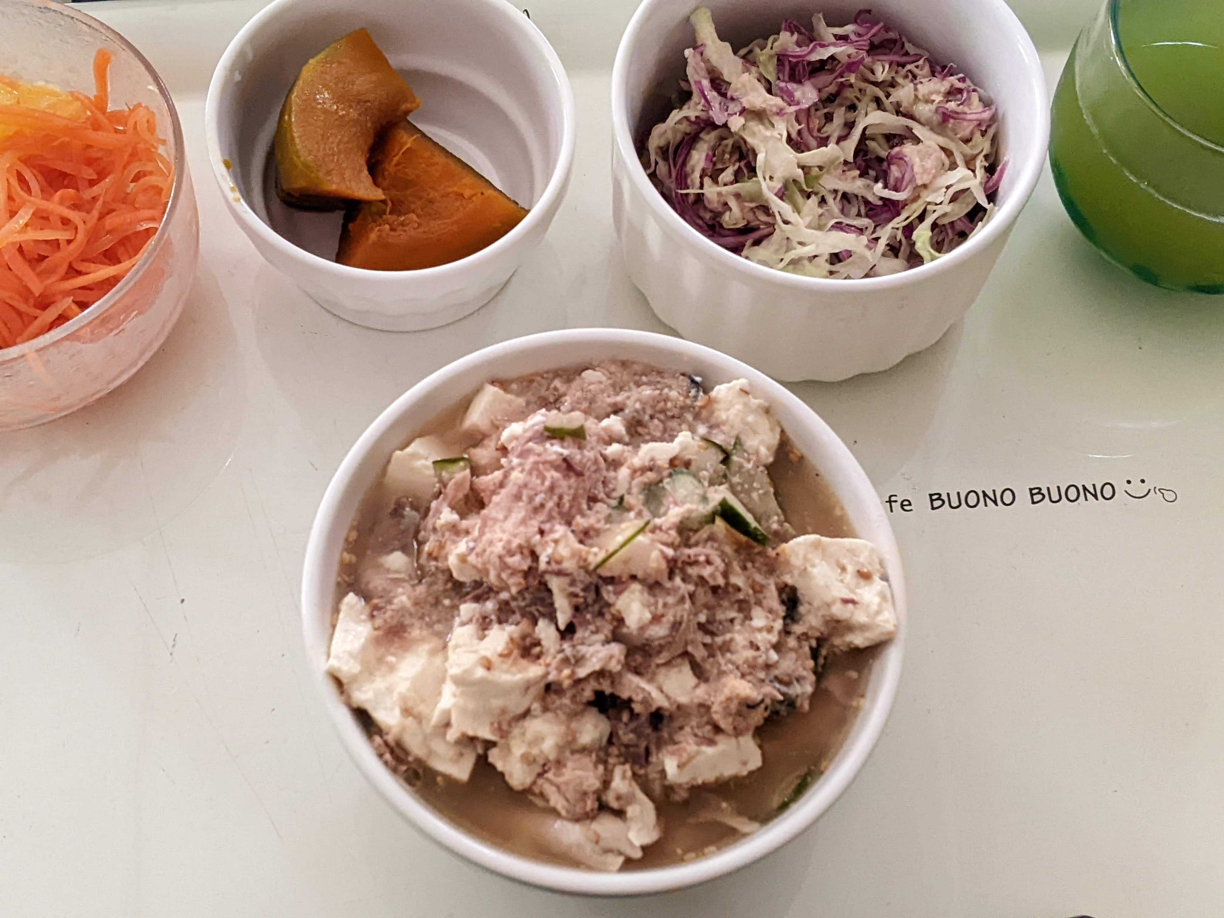 突発性難聴を克服!これで穏やかな日常が・・・と浮かれていた昨日。一晩で一転した(苦笑)・・・眠れない!なので昨夜の振り返り。23時過ぎ 就寝1時過ぎ 眠れないので起きて読書(1冊読了)4時 再び就寝6時 目が覚めたのでそれまで寝ていたもよう。7時 起床あー、右耳調子悪い。また詰まった感出ている(苦笑)ということで睡眠不足、不眠改善が最優先。これをなんとかしない限り、治ったとは言えない。さて、どうしたもんだか・・・<朝ごはん>・冷や汁ごはん・キャベツとツナのサラダ・カボチャの煮物・キャロットラペ一応食事は気を遣っているつもりなんだけどな・・・不思議なのが大して寝ていないから昼間眠くなるかと思いきや眠気がこない(苦笑)眠れる日、眠れない日が交互にくるの?毎日ちゃんと眠りたいよぅ。もう不眠解消に良いと思われること、いろいろやってみるしかない!ヘッドスパがいいとは言ってもそれなりにいいお値段(7,000円とか)。毎日通っていたら破産しちゃうって!(笑)<晩ごはん>・焙煎ごまスープ(市販のもの。結構お気に入り)・豆乳トマトリゾットみたいなもの(温玉のせ)残っていたミネストローネみたいなやつに豆乳を入れてごはんにのせただけ。時間無いし。適当に作ったわりには意外に美味しかった(笑)今日はジムの日。体を酷使したら眠れるかなぁ?(先週(☆)は眠れなかったけど・苦笑)どうしたんだ、私。しっかりしてーーーーーーー!と心の中で叫びつつ。ジムいってきます。帰ってきたらすぐ寝よう。