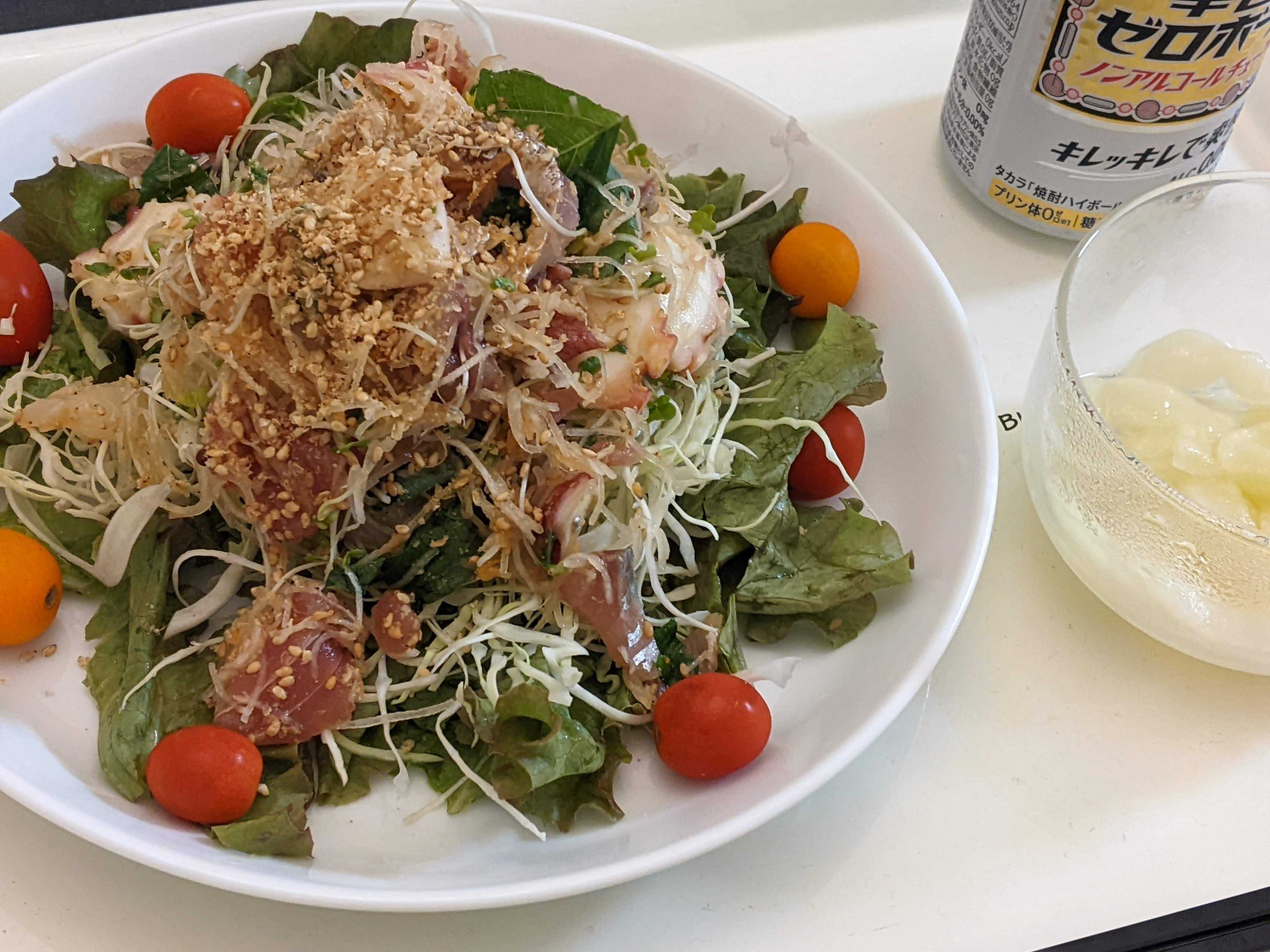 睡眠不足の中、再度耳鼻科へ。まぁ、悪くはなっていなかったけど、イマイチな結果。自分的には全く改善しているように思えない。相変わらず耳抜きが出来ない感が気持ち悪い。今週も薬を服用かぁ。あ・・・このままじゃお酒飲めないじゃん。うわー、週末飲みたい!お疲れ様、自分!!したい!!!なので早くこの難聴をなんとかしたい!その為にはまず睡眠不足の解消が必須かと。なんとなく体を休めるくらいじゃダメなんだなー。もっと変えていかないと!ということで今日からいろいろ試してみるつもり。まずは寝る前のお風呂を夕飯前にしてみる。いつも帰宅するのが19時くらいだからそうすると夕飯の時間が遅くなるんだよねー遅くなるなら夕飯を抜きたいところだけど、薬を飲まないといけないからそうはいかない。まぁ、やれること。変えていけるところからやってみよう!19時過ぎに帰宅。その後お風呂の準備をし、夕飯の時間・・・21時近いんですけど?苦笑お風呂にどうしても1時間はかかるんだよなー、私。とりあえず用意した本日の夕飯。・りゅうきゅうサラダ・ウリのお新香『りゅうきゅう』ってのは、リュウジの絶品おつまみ選手権で出ていたヤツをサラダにしてみた。正直ワタシ的には「まぁまぁかな?」って感じ。野菜多めにしてサラダ風にしているし、ちょっと違うかもしれない。味とか。あんな風に感動はしなかったなー。(反応が薄い人間でもあるし・苦笑)加減がわからん。何度か作ってみないと自分好みにはならないだろうなー。今日は刺身を買ってきちゃったからちょっと支度に時間がかかったけど、もう少し夕飯でいただく物は簡単にしよう(いや、コレも十分簡単だけどね・苦笑)あとは寝るだけなんだし、もう少し軽くていいよなー。とにかく!睡眠時間の確保が最優先な気がする。夕飯は寝る前3時間までに。とか聞くけど、そんなこと気にしてられない。いつも布団に入るのが12時過ぎだったけど、今日は11時が目標!今夜は眠れますように・・・
