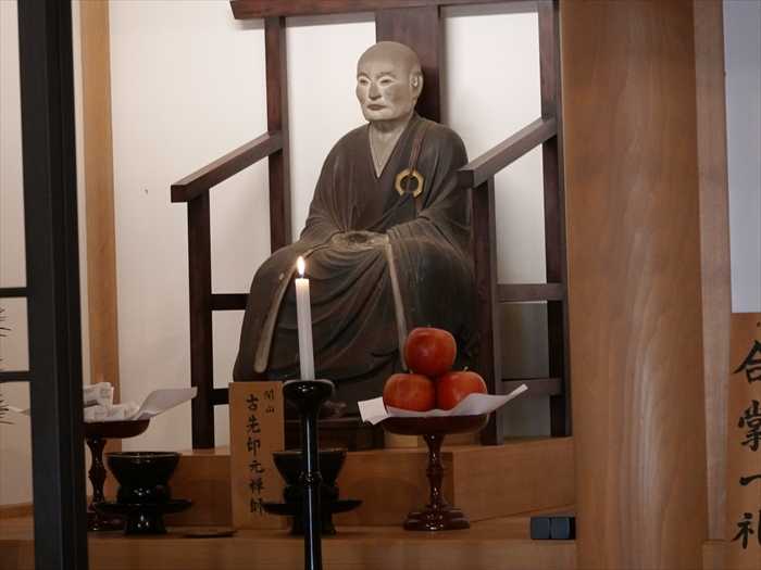 開山は古先印元(こせんいんげん)禅師。正面本堂に足利尊氏坐像と古先印元禅師坐像が