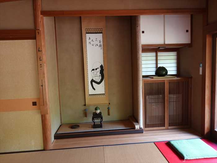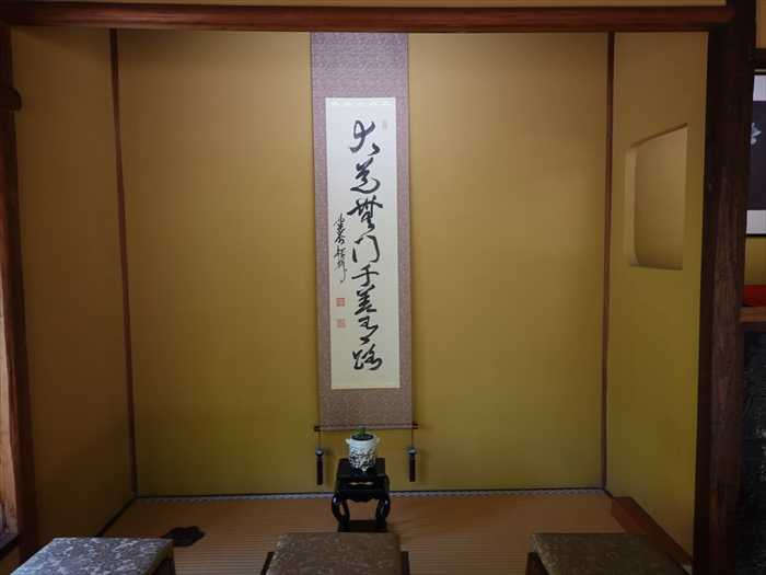 掛け軸には「大道無門 千差有路」と禅の言葉が。
