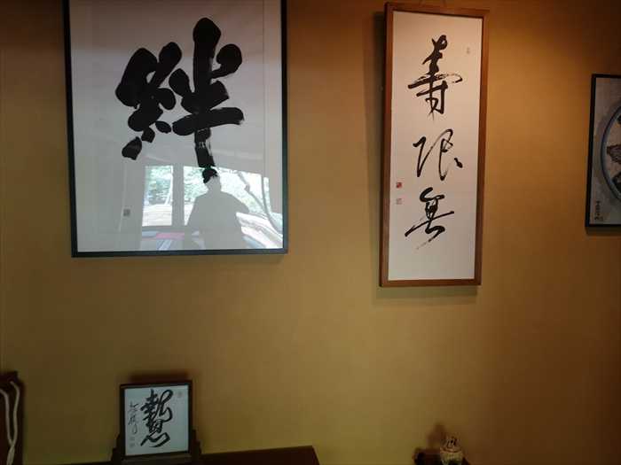 「絆」、「報恩」、「寿限無(じゅげむ) 」の文字が。