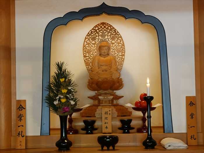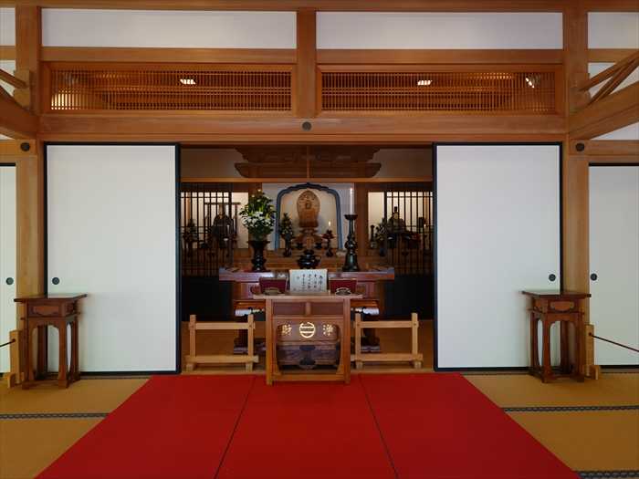 左手廊下を少し歩くと、「本堂」に入り本尊である「釈迦如来像」の前に出た。