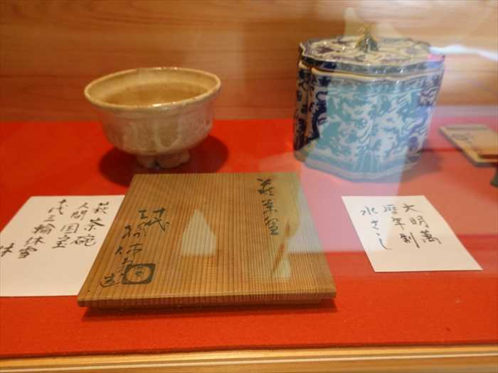 「萩茶碗 人間国宝 千代三輪休雪 休和)」と「大明萬暦年制 水さし」。