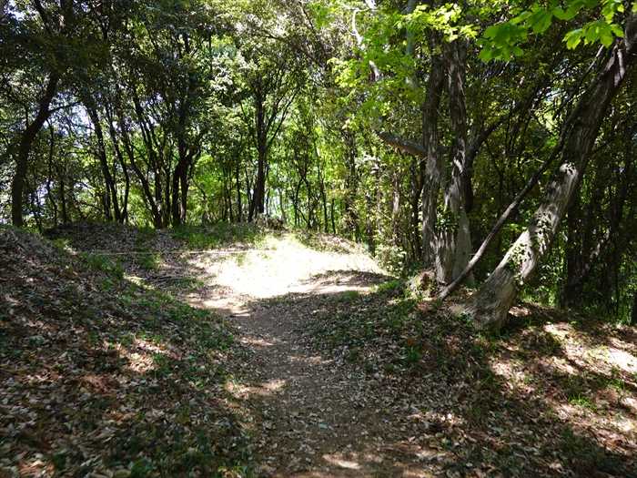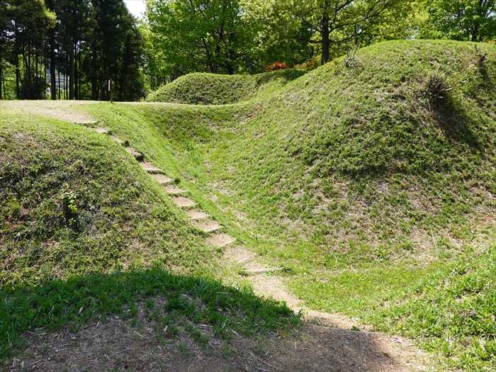 東ニの郭と三の郭の間の虎ロは、杉山城跡では珍しく直線的な坂虎ロとなっています。