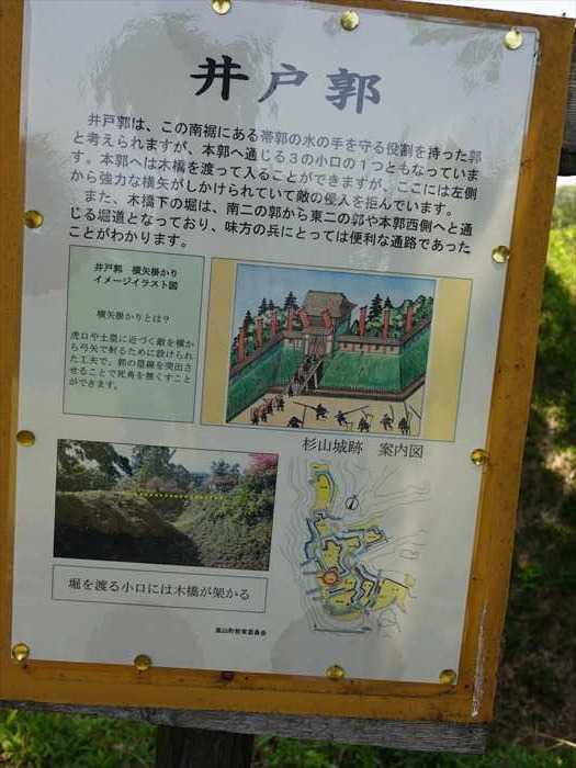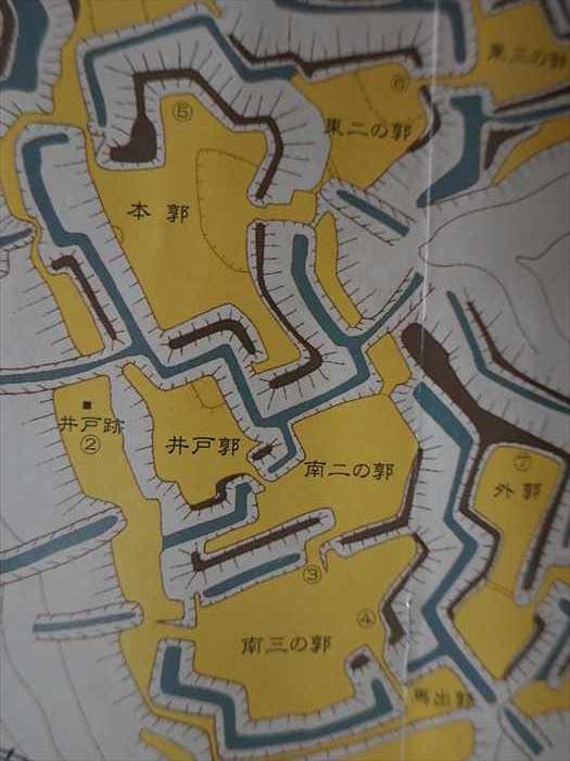 井戸郭は、この南裾にある帯郭の水の手を守る役割を持った郭と考えられますが、本郭へ通じる