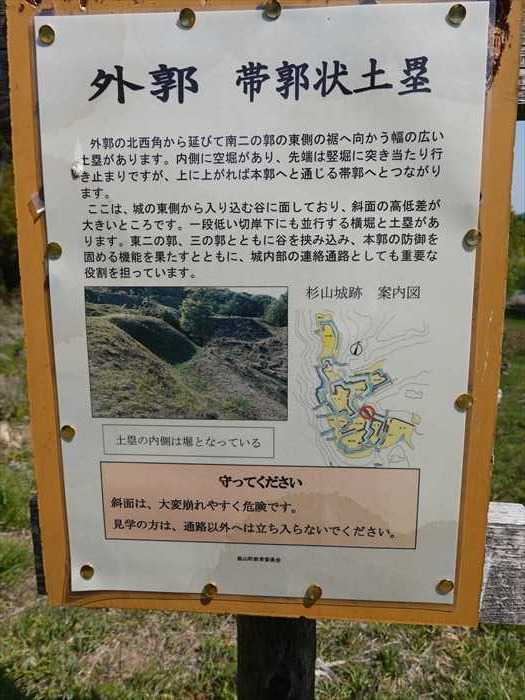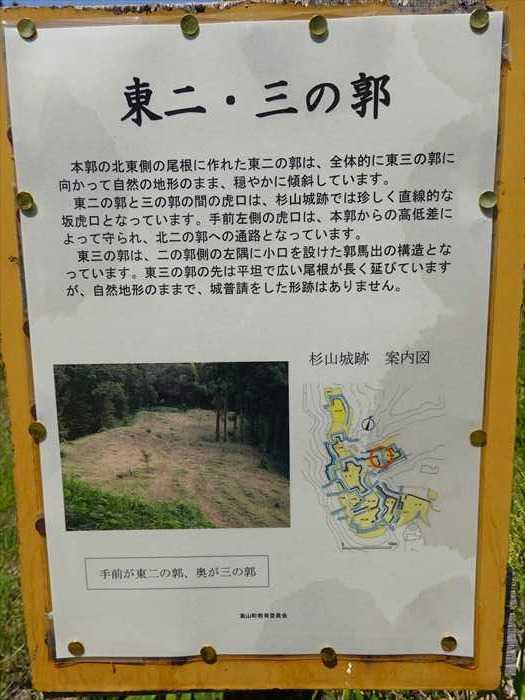 杉山城跡 」案内板の国指定史跡のところはシールで上貼りしてあった。
