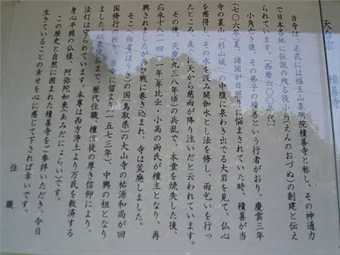 小角亡き後、その弟子の積善という行者がおり、慶雲3年(706)夏、諸国が日照りに悩まされて