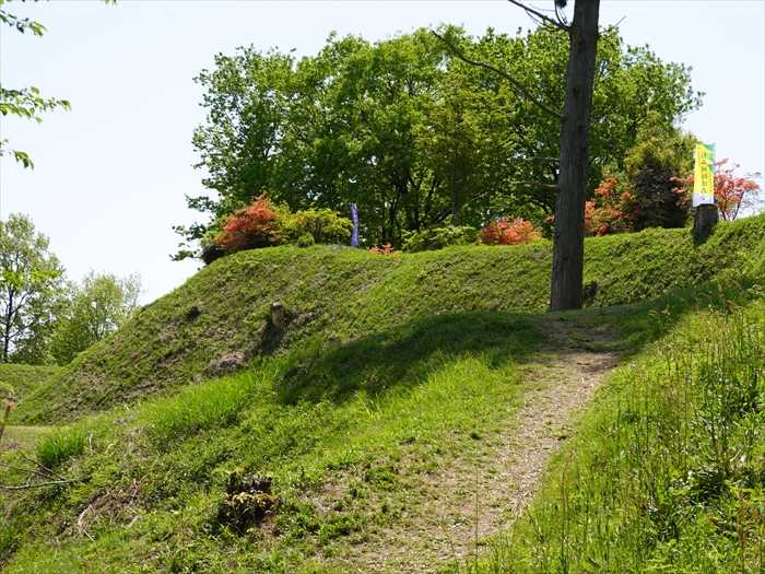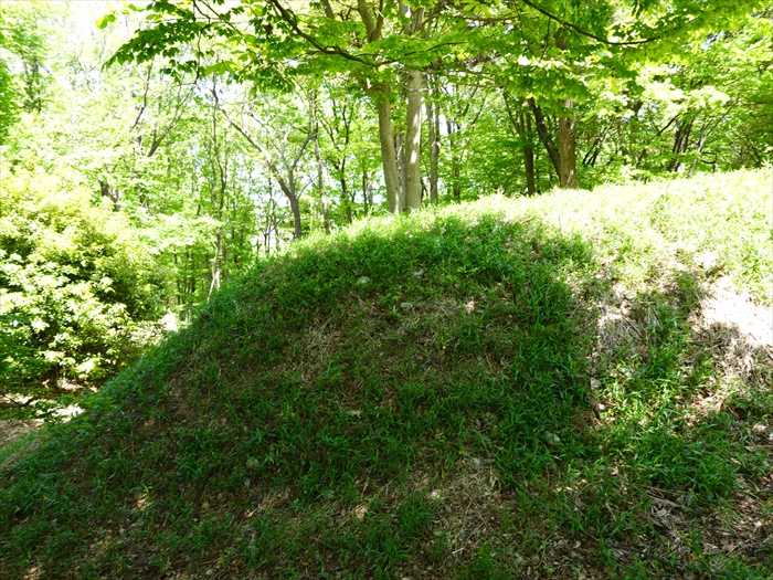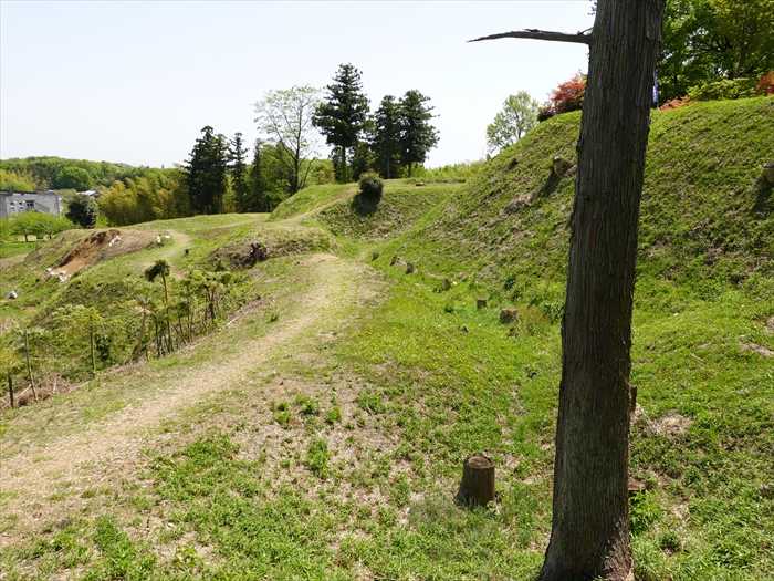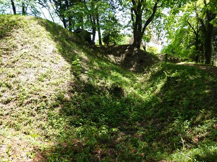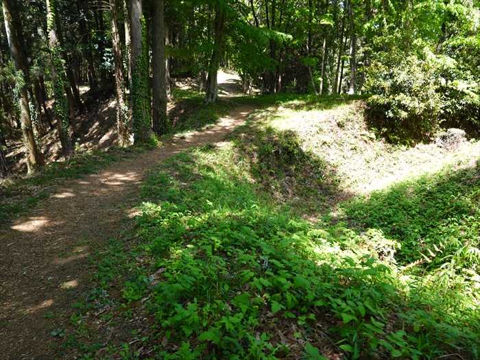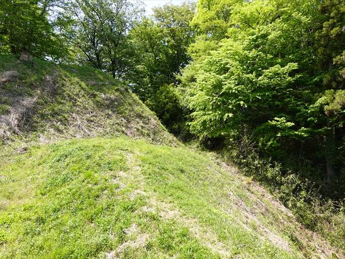 外郭の北西角から延びて南ニの郭の東側の裾へ向かう幅の広い土塁があります。内側に空堀が