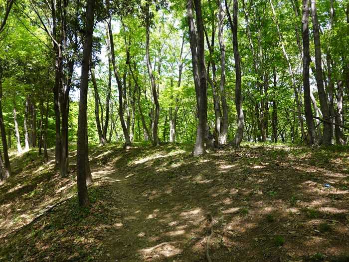 本郭の北東側の尾根に作れた東ニの郭は、全体的に東三の郭に向かって自然の地形のまま、