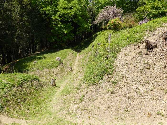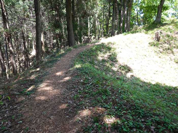 この虎口から西に下ると、細長い帯状(帯郭)が続きます。