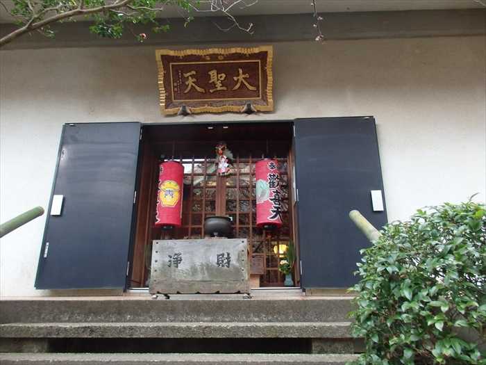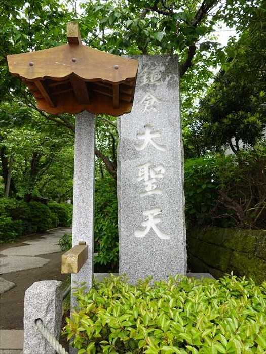 「鎌倉大聖天」碑の前には、提灯の雨よけの屋根が対で。