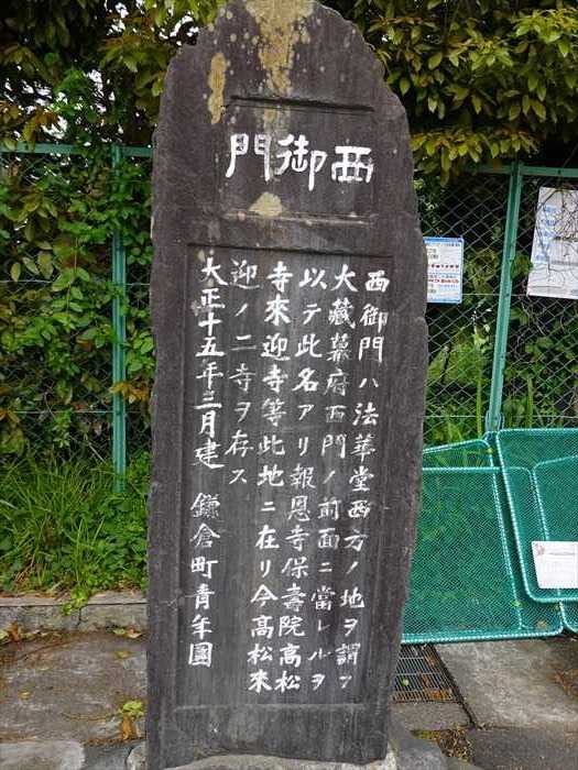 「西御門は 法華堂西方の地をいふ 大蔵幕府西門の前面に当たれるを以て此名あり