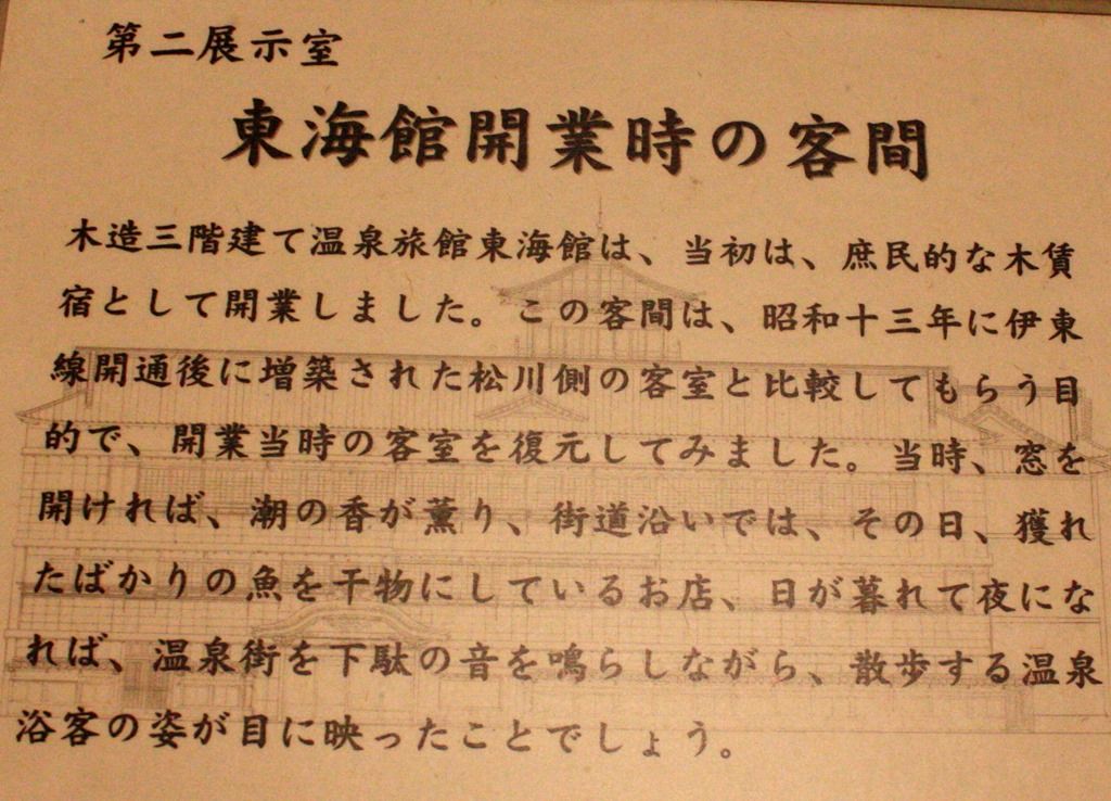 館内では、東海館の歴史や伊東温泉の歴史、伊東温泉と文人墨客についての展示を行っていた。