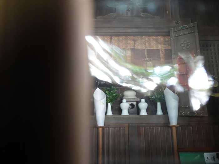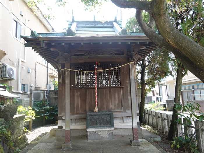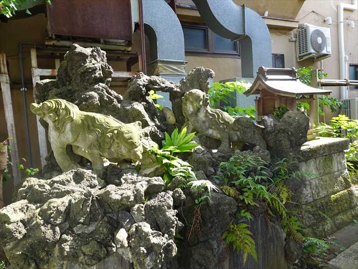 「獅子山」と奥に小さな「境内社」。稲荷社であろうか。