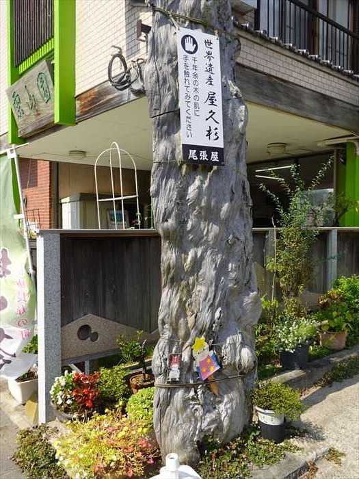 「世界遺産 屋久杉 千年余の木の肌に手を触れてみてください」。