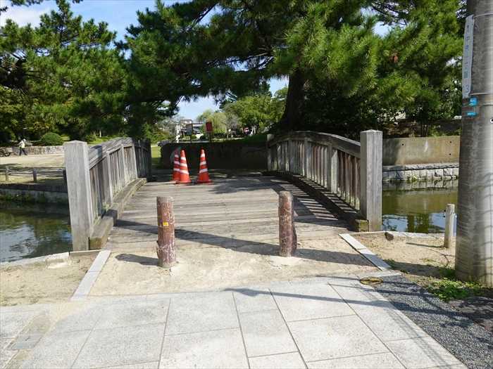 「土浦城」の堀に架かる太鼓橋を渡る。