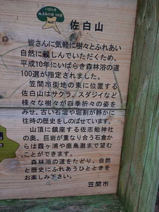 裏には「笠間初代の城主藤原時朝はこの地佐白山上に城を創建し笠間地方の領主となり笠間氏を名乗る