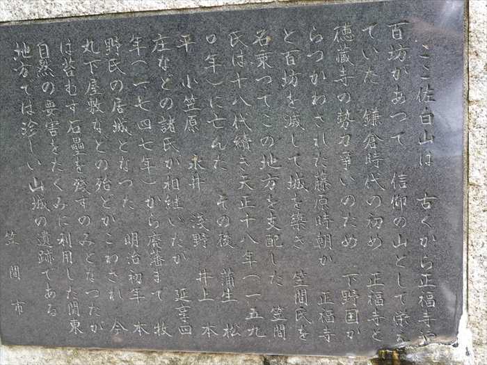 「ここ佐白山は、古くから正福寺の百坊があって、信仰の山として栄えていた。鎌倉時代の初め、