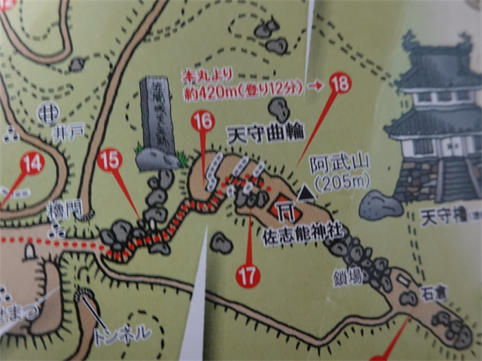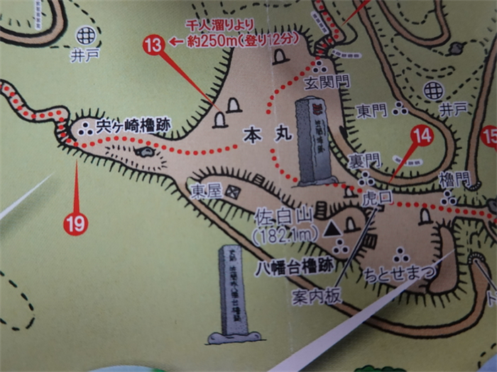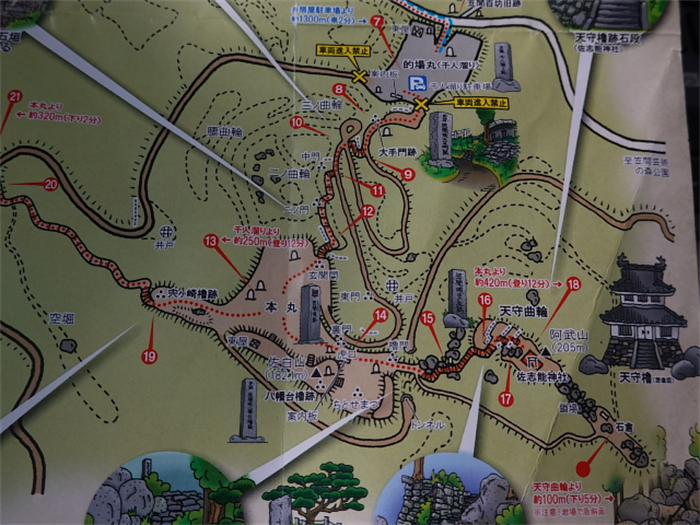 城の地積は、およそ一万六千平方メートルと推測され、天然の地形を巧みに利用して、