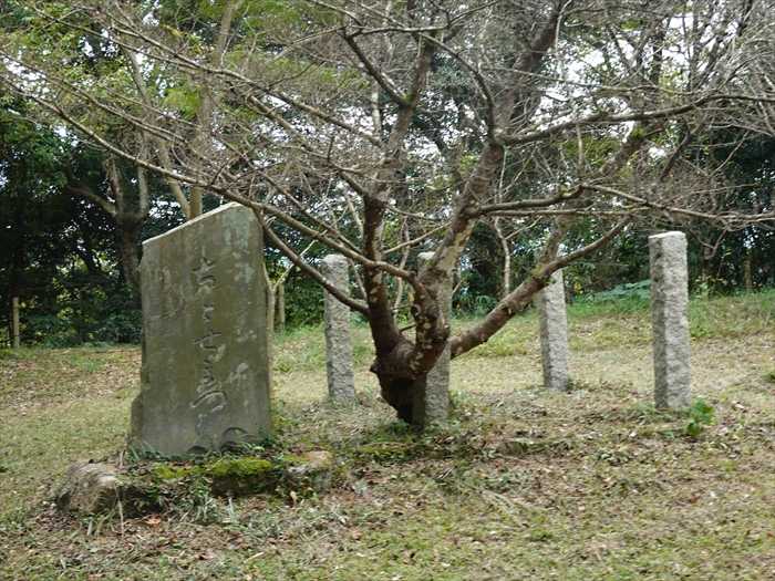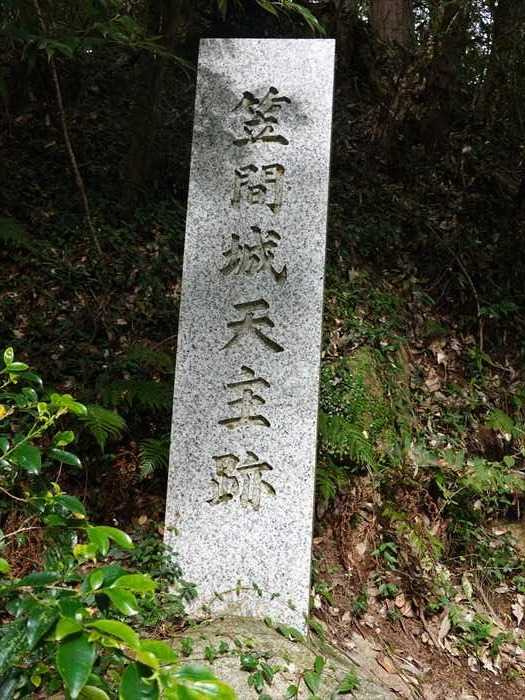 「笠間城天主跡」碑。天守ではなく天主と書くのは珍しいのであった。