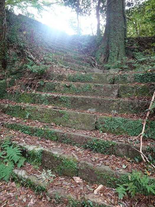 ほとんどがこわされ、今は苔むす石畳を残すのみとなったが、自然の要害をたくみに利用した