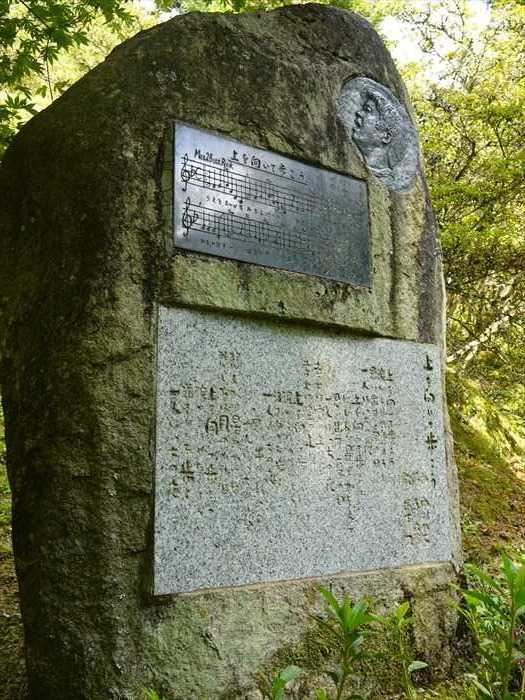 笠間つつじ園近くの道路脇にあった「上を向いて歩こう」 の「歌碑」。