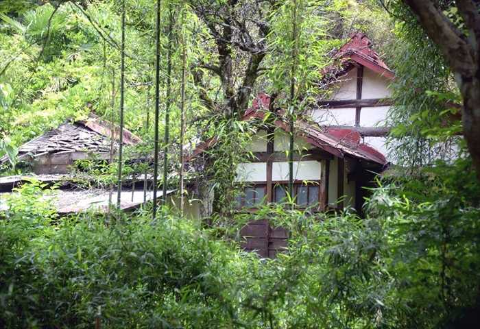 道路の反対側の竹の生い茂る山の中に住居が垣間見えたが、これが坂本九が生活していた