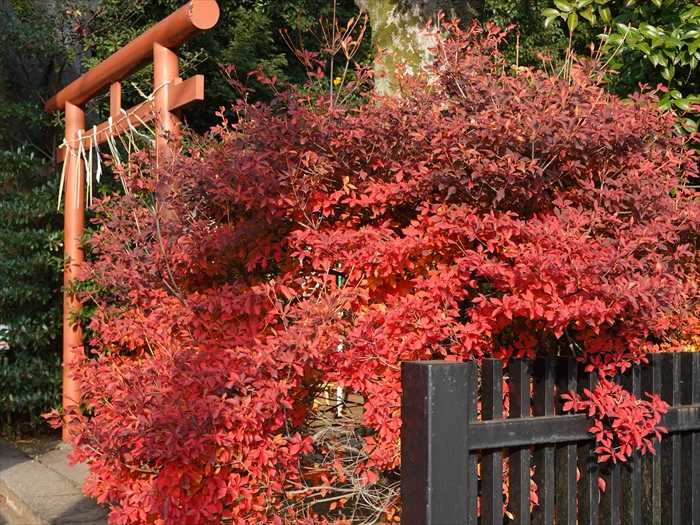 入口右のドウダンツツジの紅葉。