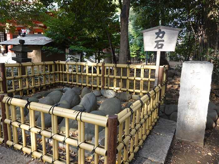 江戸時代や明治・大正に力士や村民たちの力比べに使われた力石も多く置かれていた。